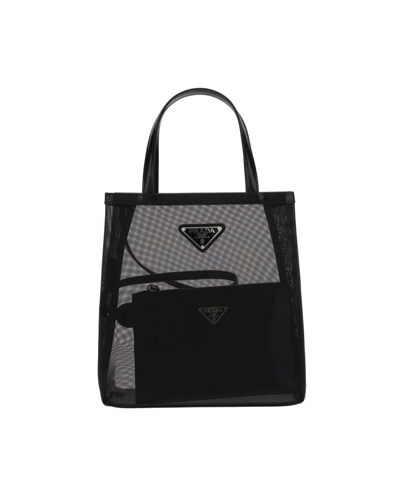Nylon Tote Bag by Prada, double handle and defined by an essential design, the model with leather profiles has a removable pouch inside and is enriched by the iconic enameled metal triangle logo of Prada in front. Composition: 100% Nylon