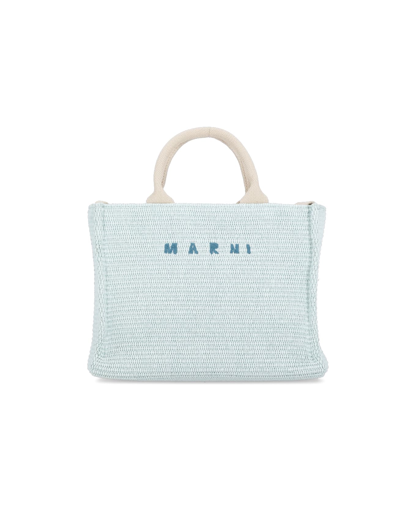 - Light blue Marni cotton hand bag for woman - Two handles - One shoulder strap - One internal zip pocket - Front contrasting color logo