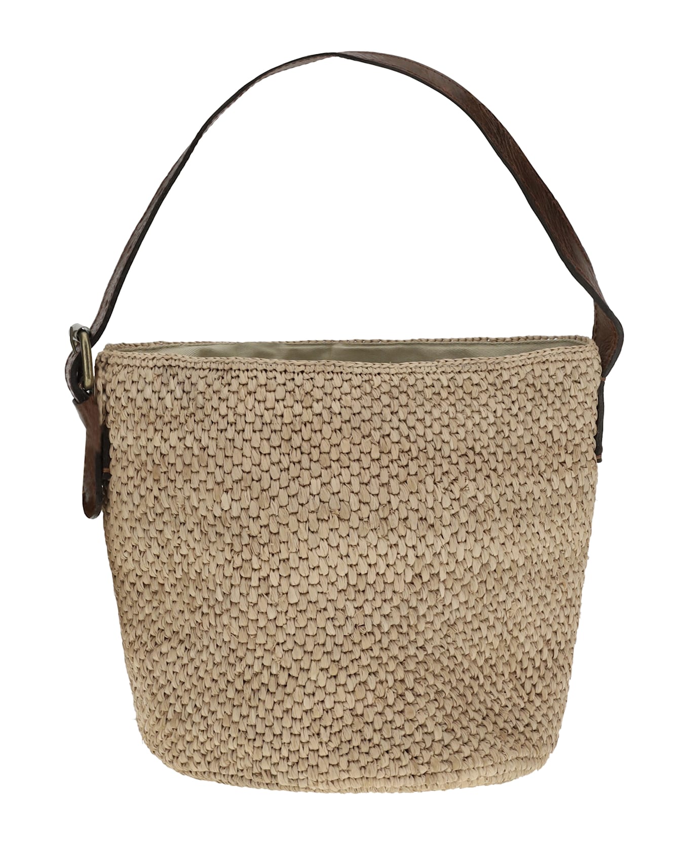 Ibeliv's lova bucket bag is made of natural raffia with an organic cotton interior flap, combining elegance and sustainability. the sliding closure and adjustable handle in vegetable-tanned leather add practicality and style. a versatile and refined accessory, ideal for the summer season and beyond. Composition: 100% % Raffia