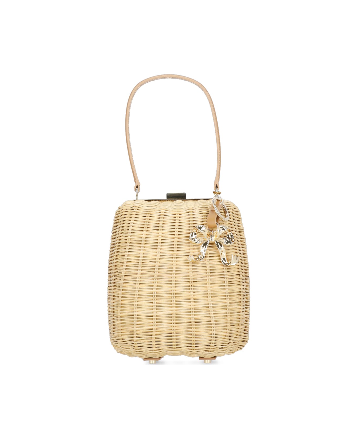 - Light brown Self Portrait rattan hand bag for woman - Slot fastening - One handle - One charm with metal bow