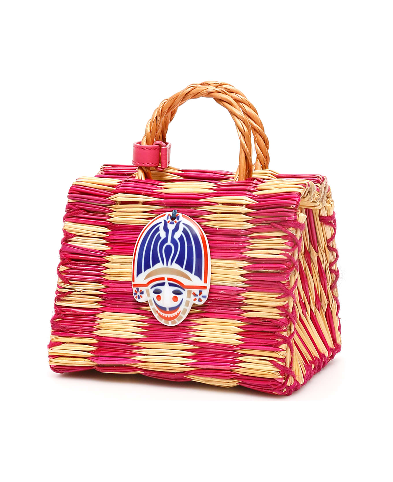 Mini Tom Tom bag by HEIMAT ATLANTICA crafted in hand-woven reed and enriched with porcelain fetish from Sargadelos applied on front. Reed top handles connected with a leather strap with press-stud, unlined interior with leather base, gold-finished metal protective feet.