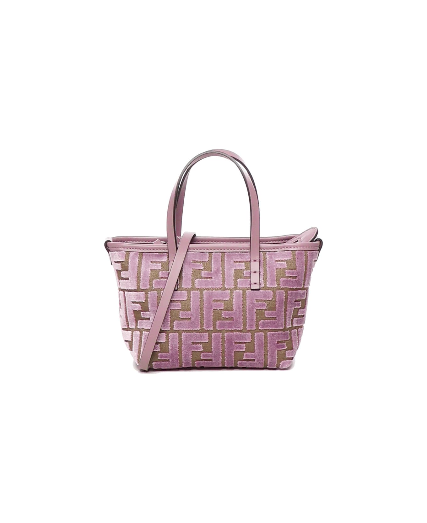 -Made of jacquard velvet with embossed FF pattern -Zip closure with long knotted leather puller -Leather top handles -Adjustable and removable shoulder strap -Measurements: 15. 5 x 13 x11 cm -Made in Italy -Color: Mauve