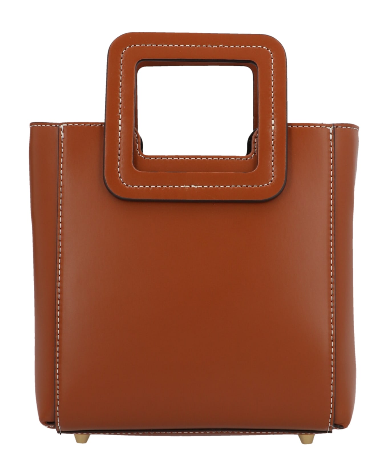 'Shirley bag' leather mini shopping bag with contrast stitching, a squared handle and an adjustable and removable leather shoulder strap.