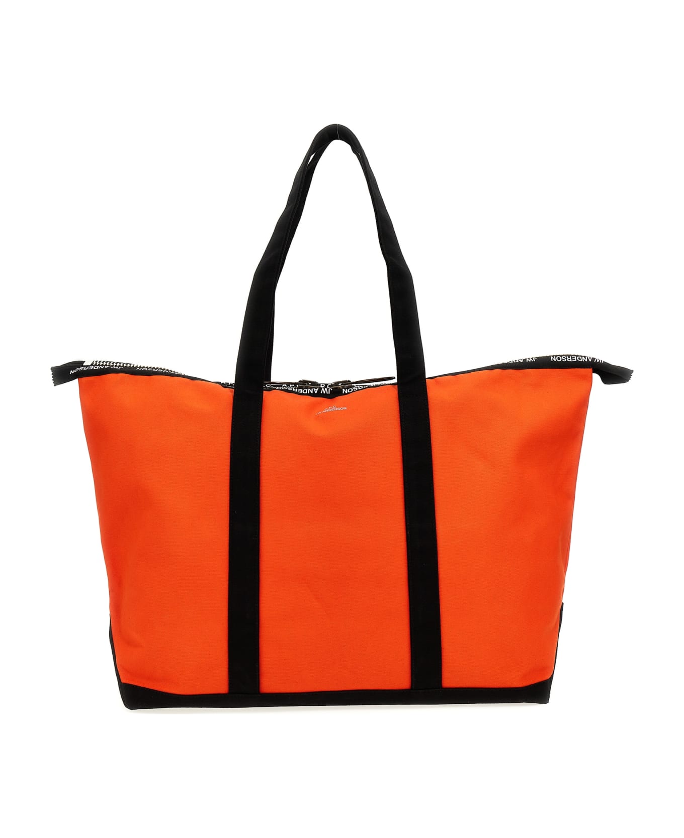 A. P. C. x JW Anderson canvas shopping bag with logo print and zip closure.
