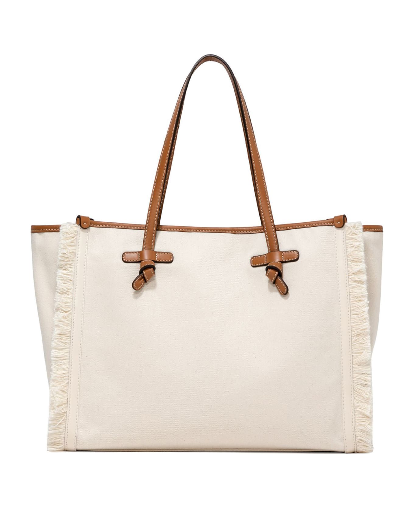 Shopping bag in cream canvas, frayed profiles, leather handles, magnetic clasp closure, contrast lining and the leather clutch bag, size: 31x38x16 cm. Composition: Canvas, 100%