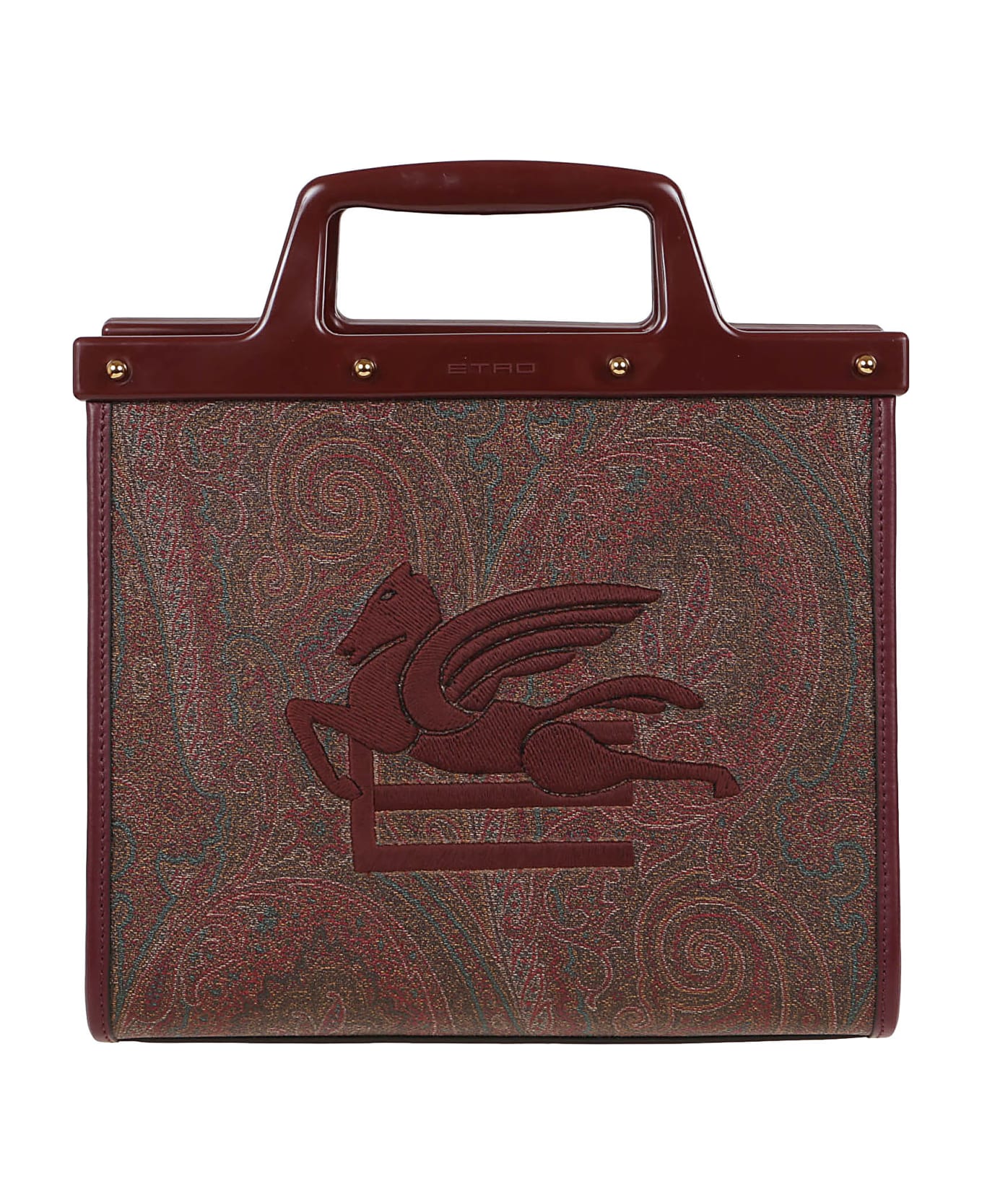 Love Trotter shopping bag made with the iconic BY ETRO jacquard Paisley fabric. Contrasting inner lining in striped jacquard fabric; embroidered plastic handles. Print with bird and flower detail; decorated with the ETRO Pegaso logo embroidered with a three-dimensional effect.