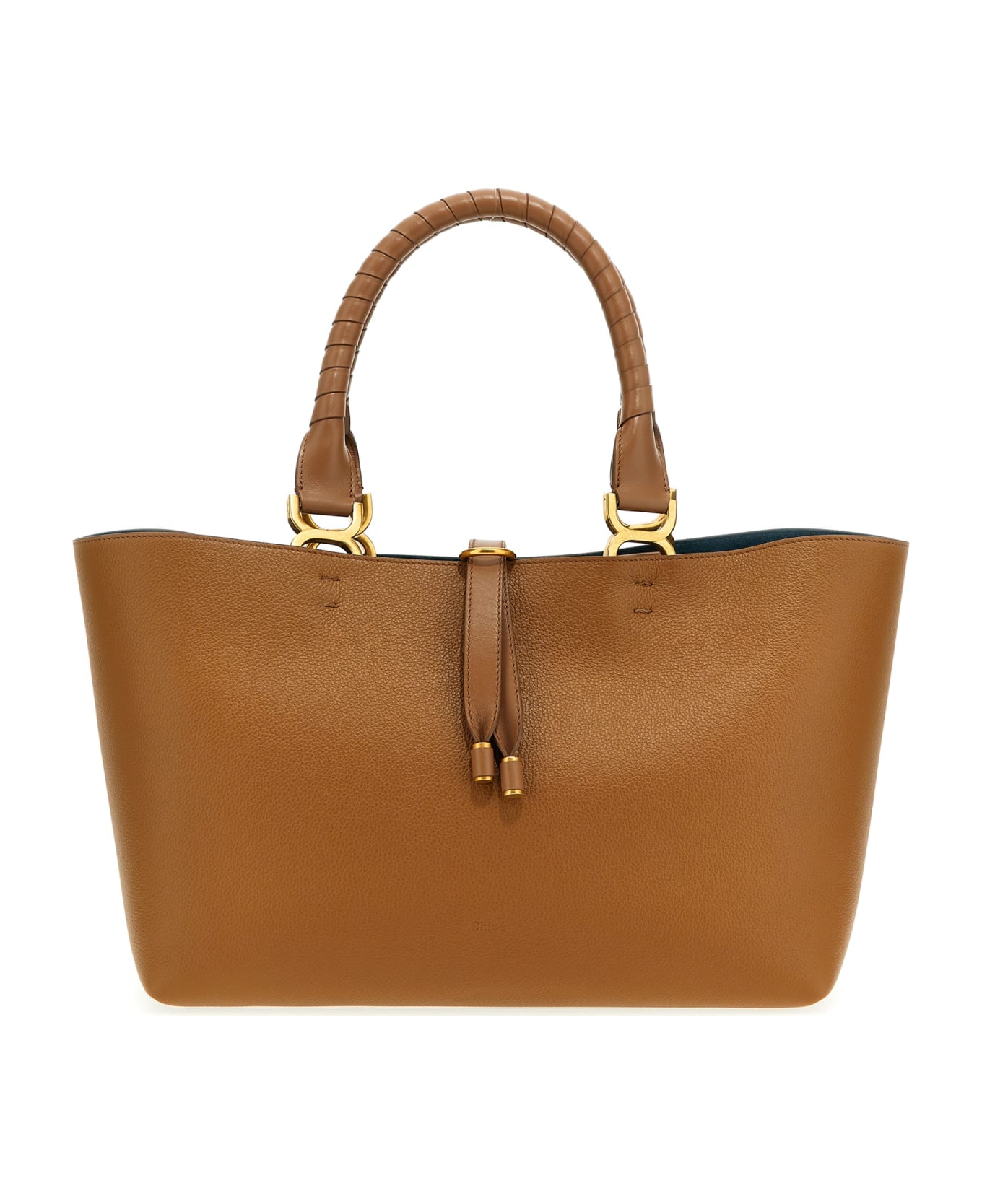 Marcie Small' grained and stitched calf leather shopping bag with handles and a tassel closure. Composition: