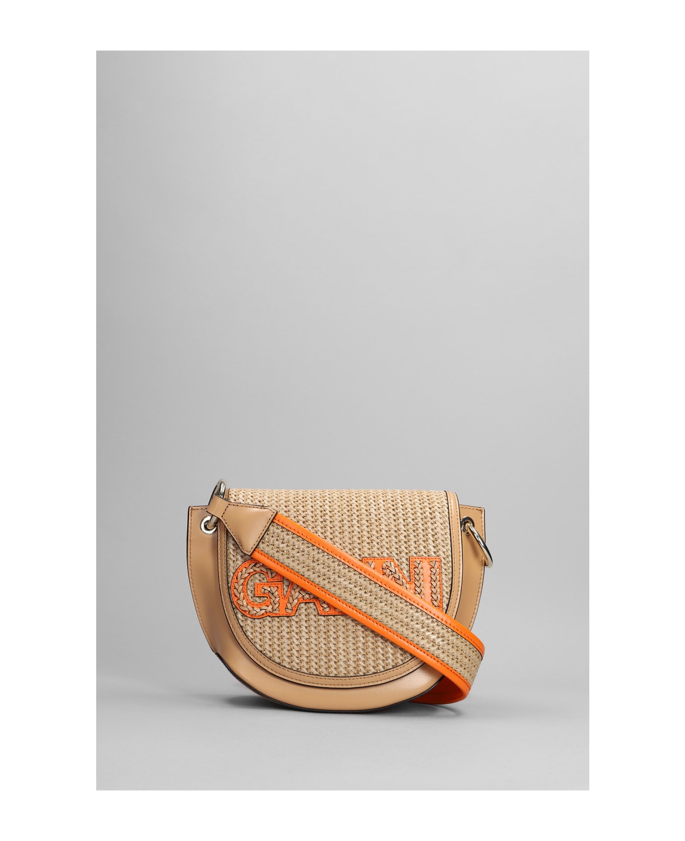 Shoulder bag in beige Silver, Height 240 mm, Width 190 mm, shoulder strap, embroidery logo, leather detail, rafia fabric, Made in China