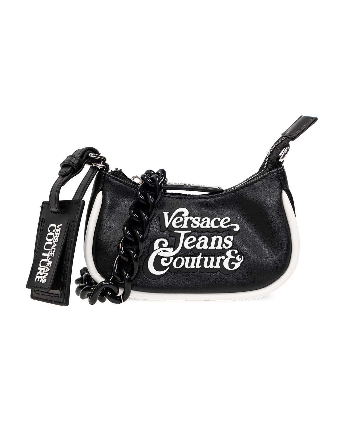Black shoulder bag from Versace Jeans Couture. Made of faux leather, this item features a zip fastening, rubber logo, detachable plastic chain, adjustable shoulder strap, ID tag, one internal compartment and silver-tone metal hardware.