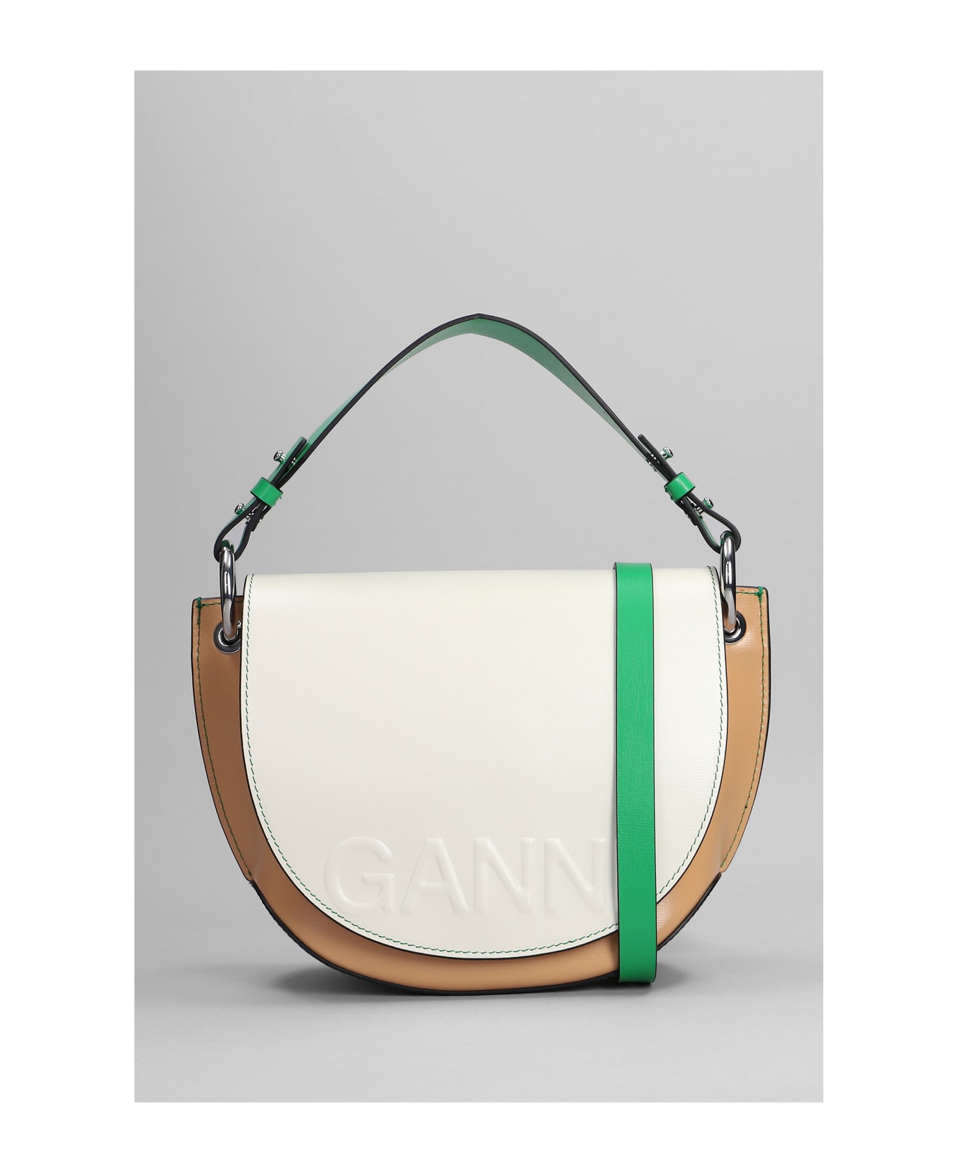 Shoulder bag in white leather, Height 180 mm, Width 240 mm, handle, shoulder strap, relief logo, flap closure, 100% leather, Made in China