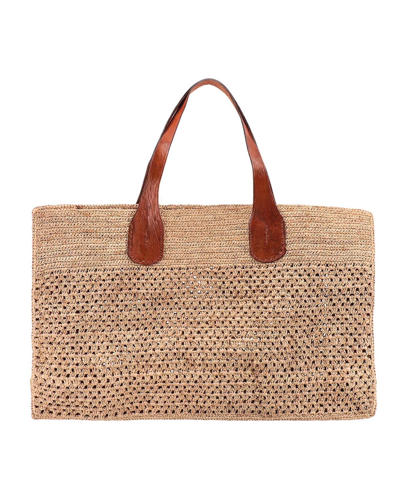 - Without Closure - Leather Handles - Internal Patch With Logo - Unlined - Rafia