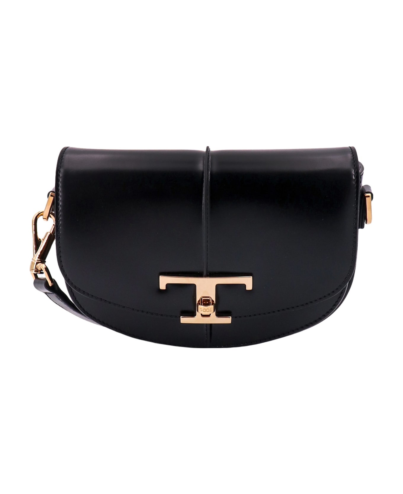 Leather shoulder bag with frontal T Timeless detail - Closure With Flap And Walker - Double Removable And Adjustable Shoulder Strap - Frontal Pockets And Internal Pocket - Made In Italy - Leather