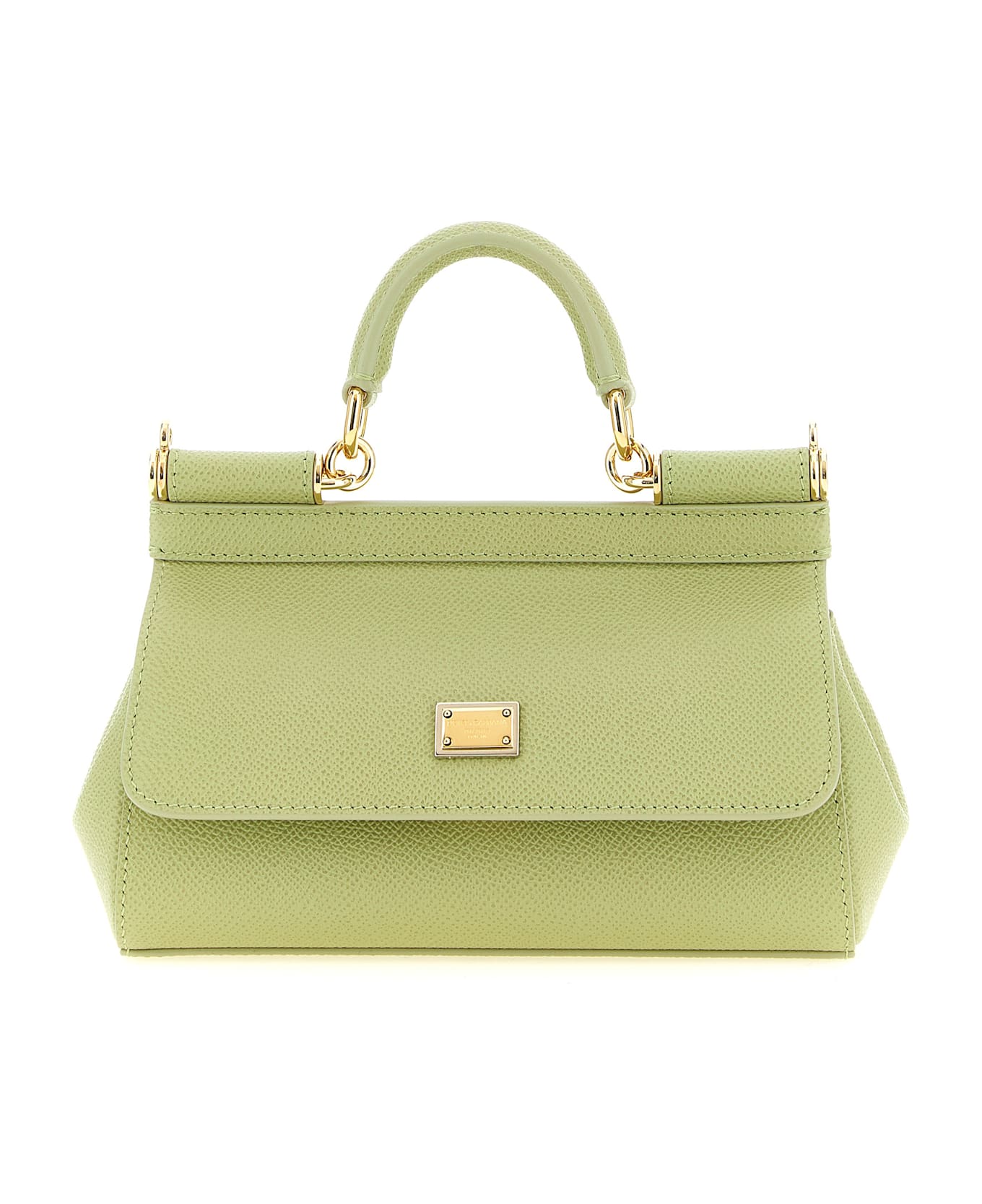 Small 'Sicily' Dauphine calf leather handbag, flap closure with metal snap mechanism and front bigalvanic logo tag, fixed handle, metal details, printed fabric lining, adjustable and removable shoulder strap. Composition: 100% calfskin leather (Bos Taurus)