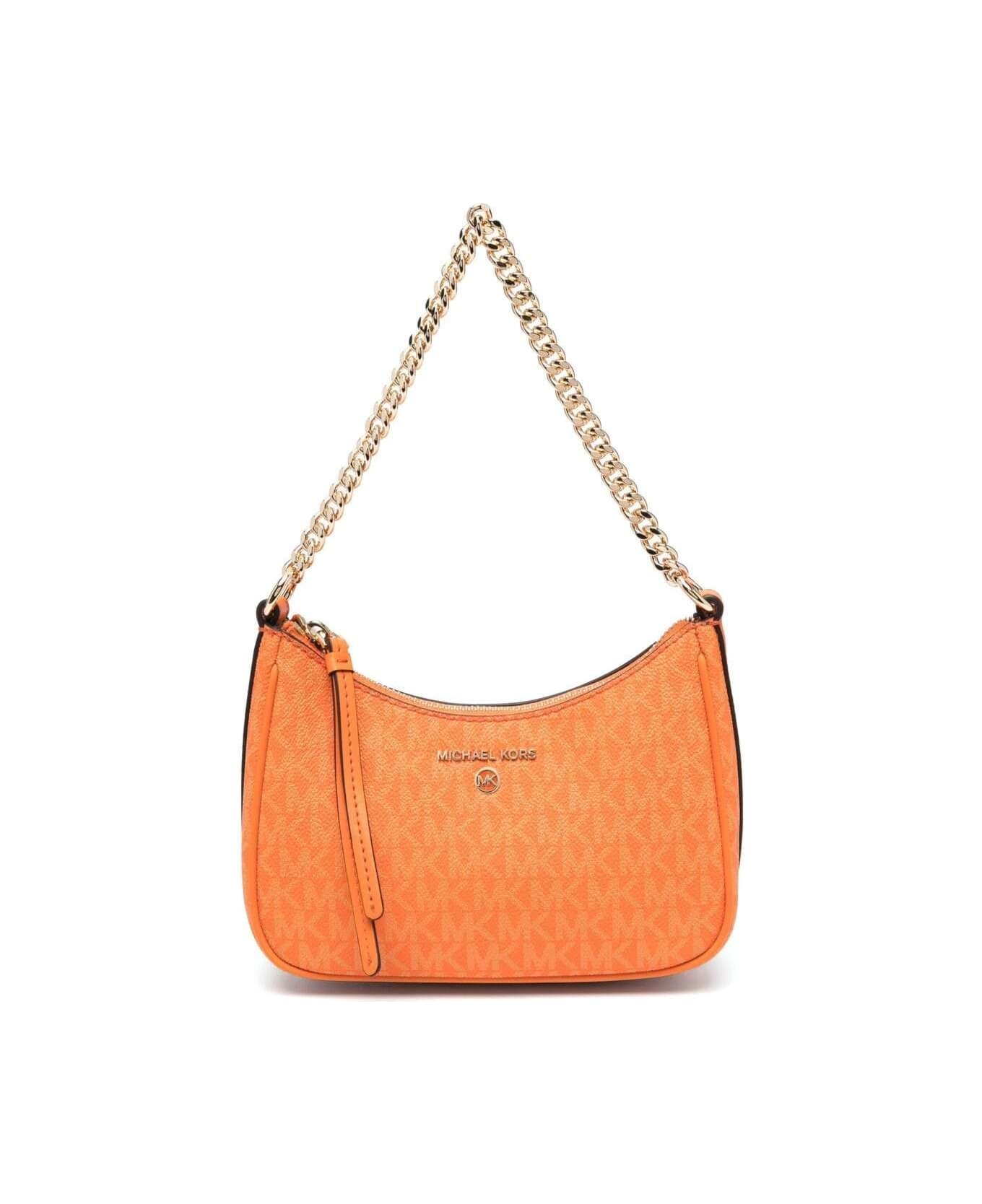 Pouch bag Gold-tone hardware Logo pattern all-over Logo plaque at the front Top zip fastening Gold-tone chain shoulder strap Orange Polyester Dimensions: 20x15x7cm