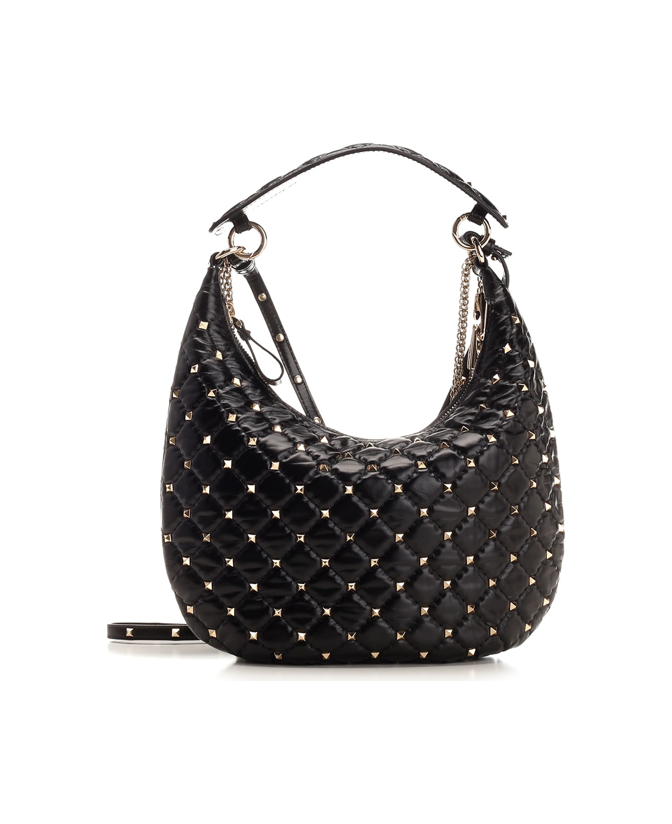 'Rockstud Spike' hobo bag by Valentino Garavani, in black nappa leather with gold-finish studs, zip closure, internal side pocket, sliding chain shoulder strap, short handle, leather shoulder strap. Composition: I CALF LEATHER - BOS TAURUS Composition: 100% Calf Leather