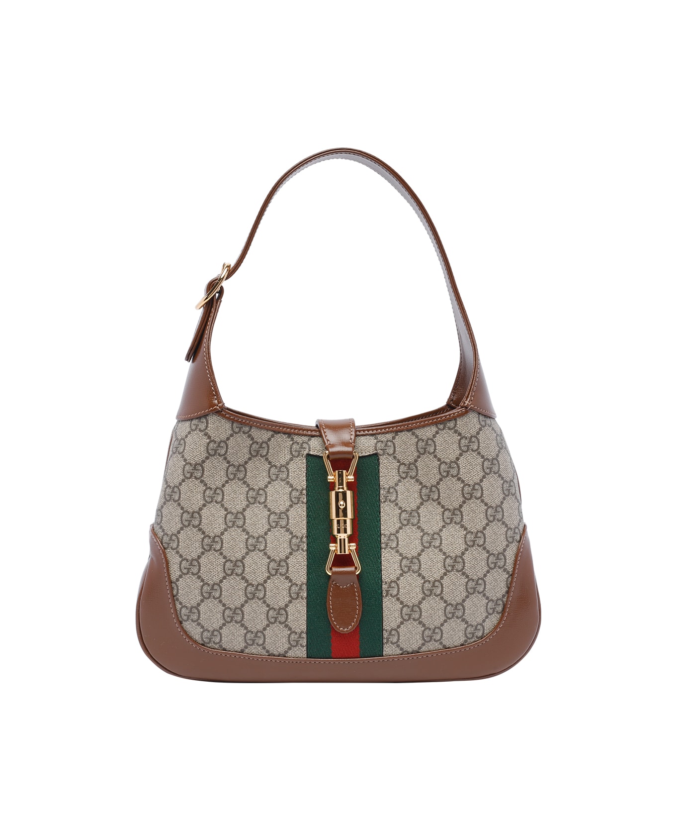 Gucci small Jackie 1961 shoulder bag, push lock, inner zip pocket, one open pocket, adjustable shoulder strap Composition: 100% Tessuto Gg, 100% Calf Leather