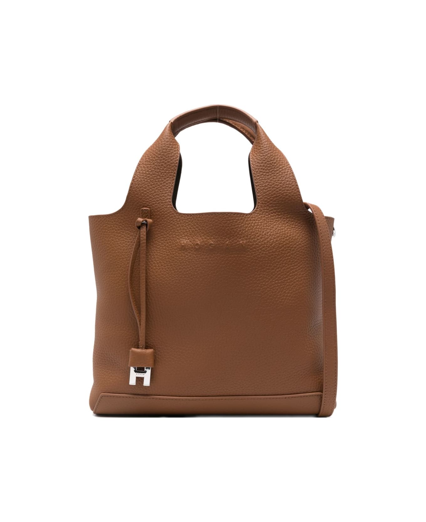 brown leather texture top handles logo plaque shoulder strap internal zip-fastening pocket This piece comes complete with a protective dust bag.