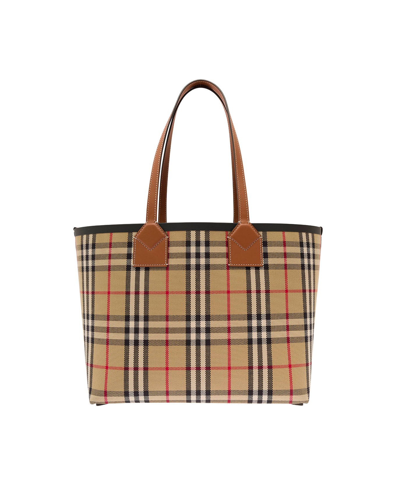'london' Beige Tote Bag With Vintage Check Motif In Cotton Woman