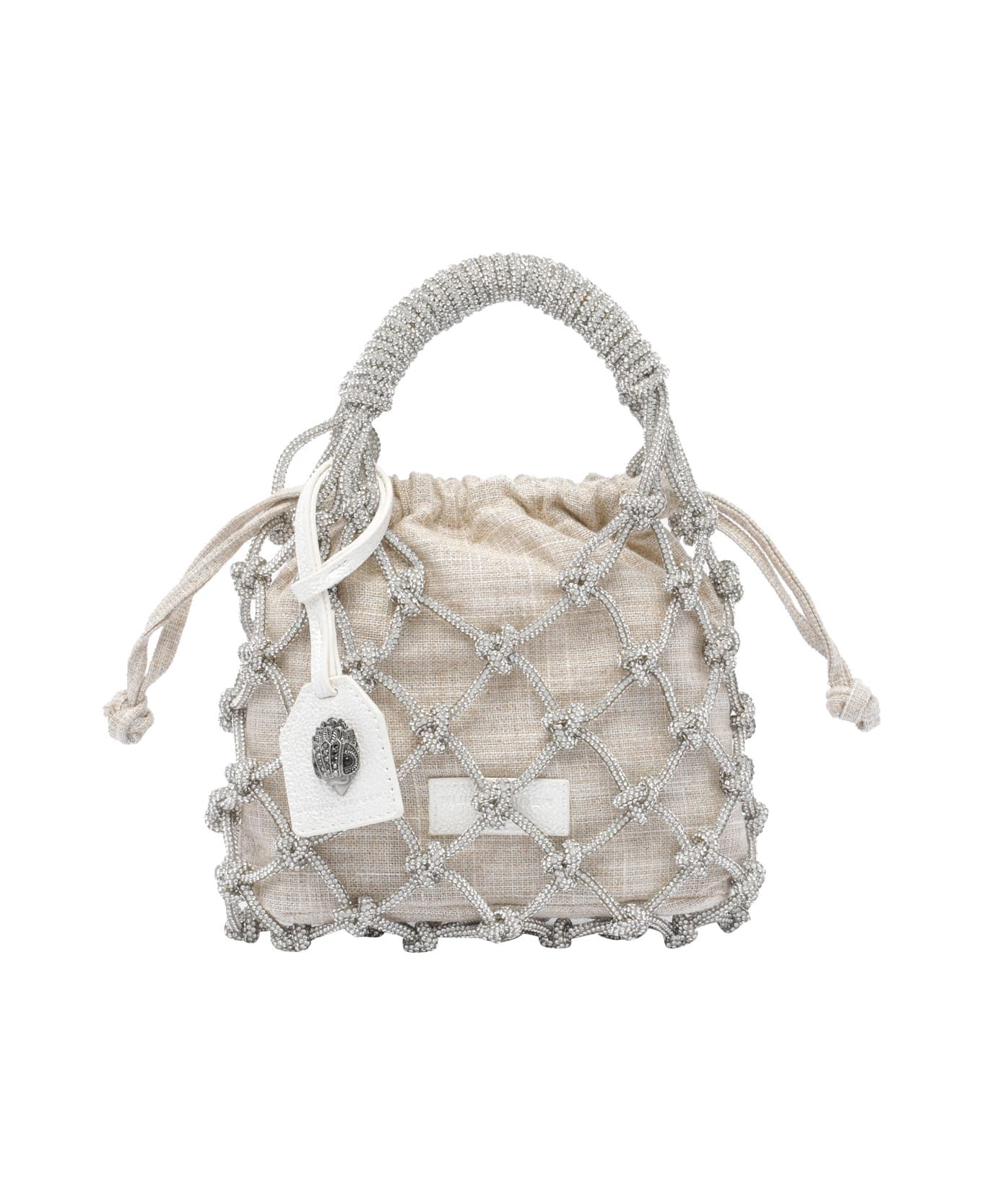 Kurt Geiger silver Small Macrame Crystal handbag, coulisse closure, 2 handles, frontal charm logo Composition: 50% Glass, 50% Resin Gluer, 100% Polyurethane