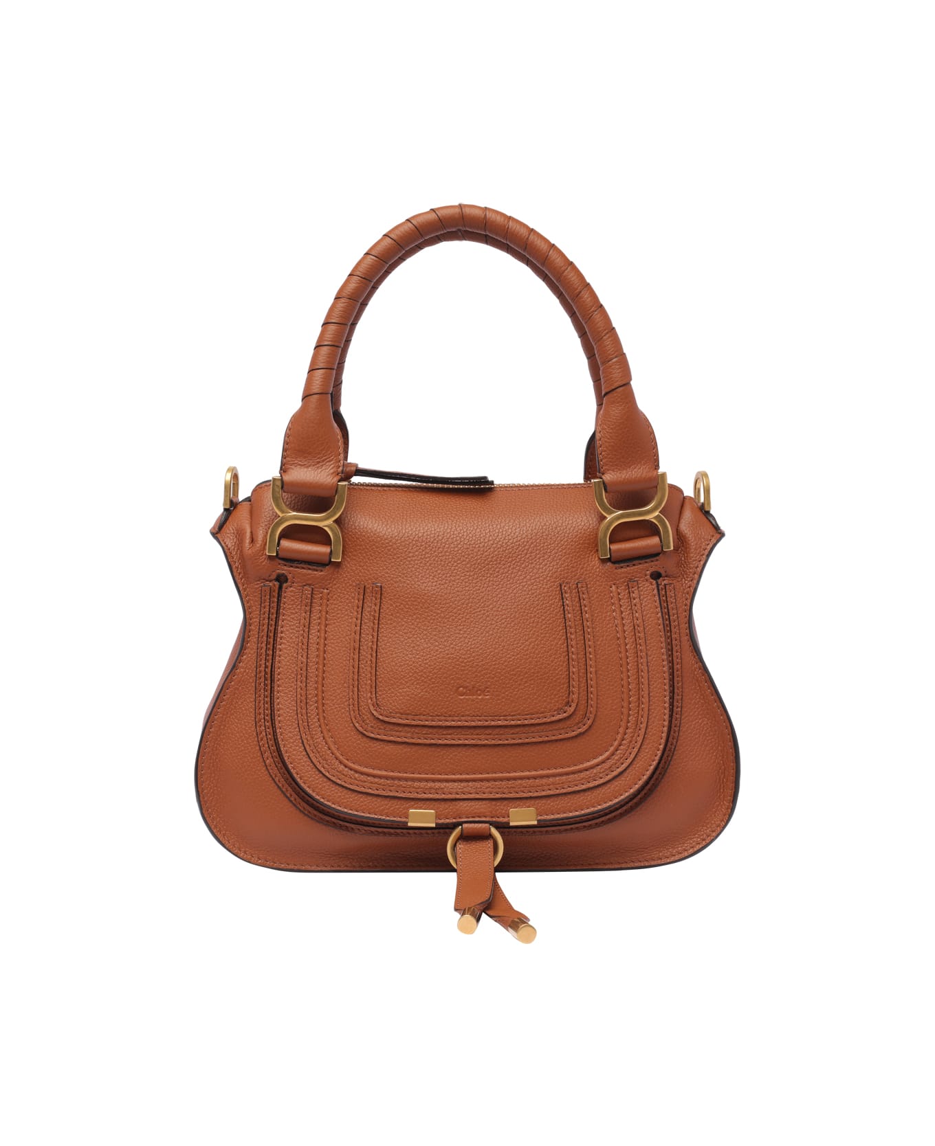 Chloe' shady brown Marcie crossbody, zip closure, one zip pocket inside and one external pocket, double handle, adjustable and detachable shoulder strap, frontal logo Composition: 100% Calf Leather