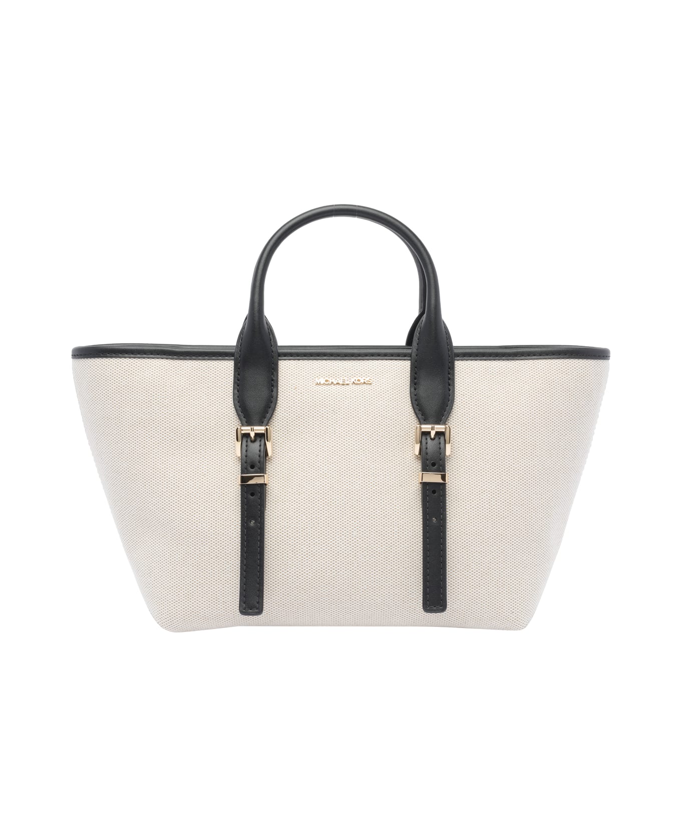 Michael Michael Kors white handbag, zip closure, inner open pocket, adjustable and removable shoulder strap, 2 handles, logo Composition: 56% Cotton, 44% Polyester