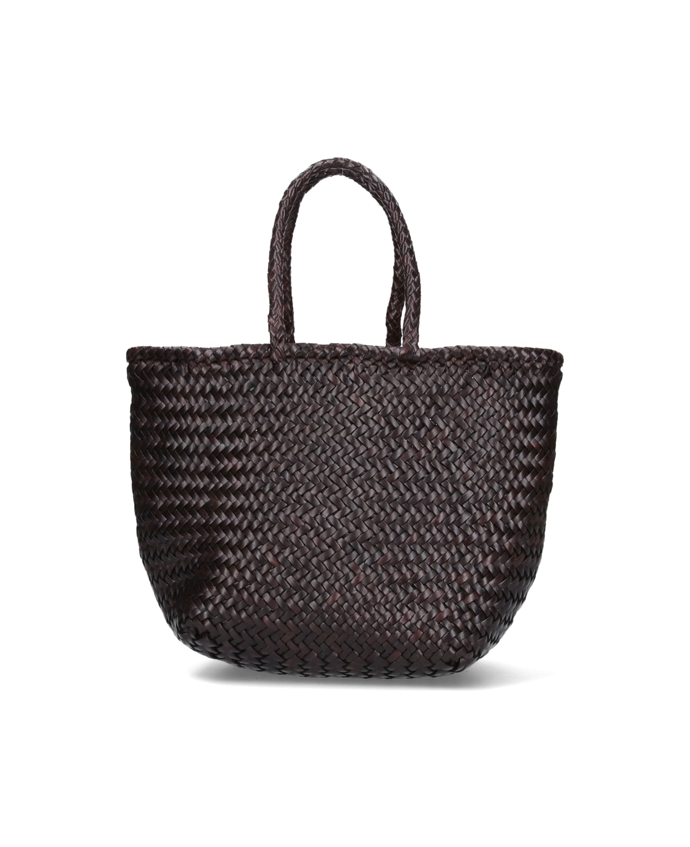Small tote bag 'Grace' Dragon - handmade - in brown woven leather, two top handles, single inner compartment. Composition: 100% Leather