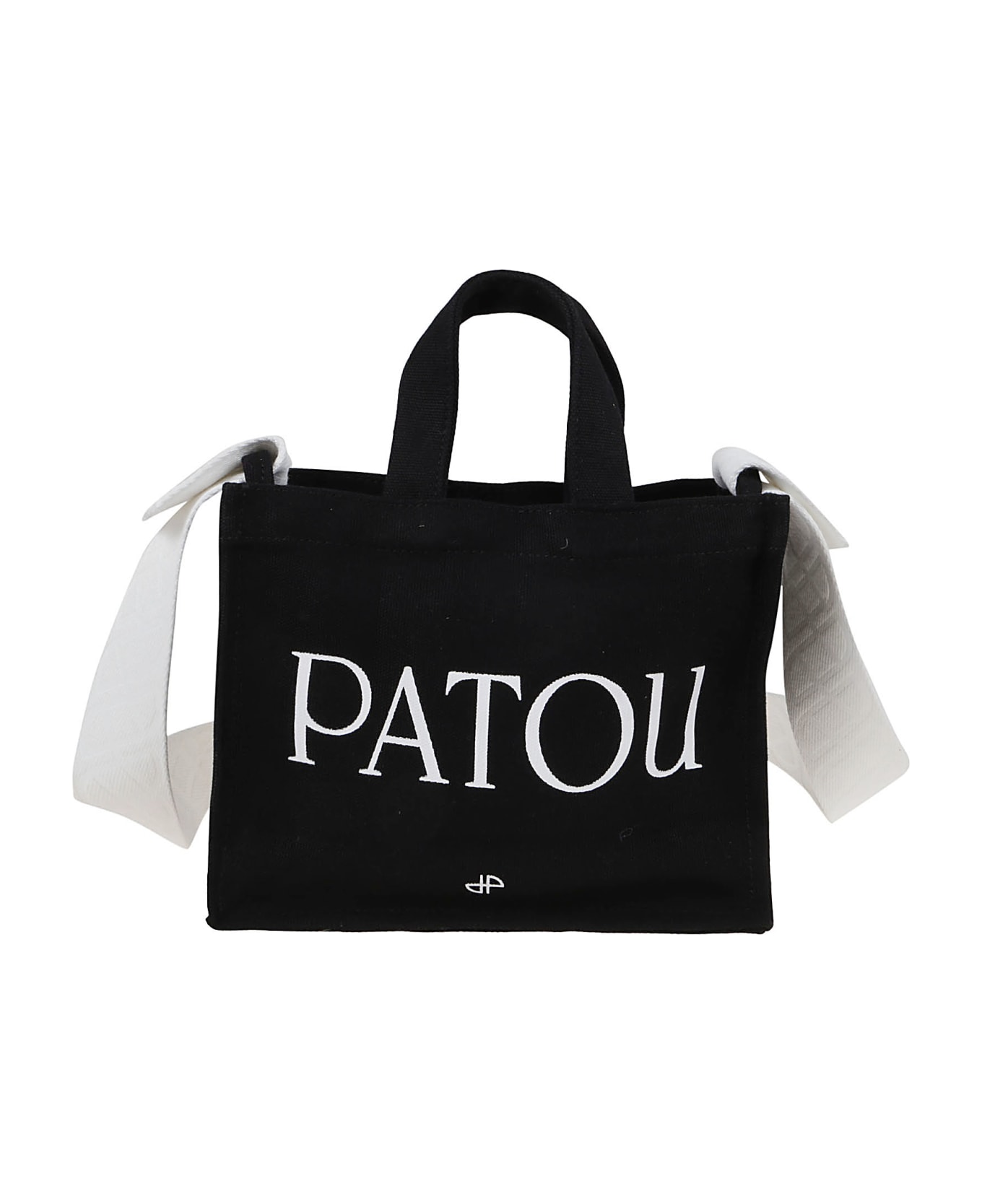 Tote bags in organic cotton BY PATOU. Double handle; contrasting shoulder strap with embossed JP designs; button closure. Patou logo detail and contrasting JP monogram on the front.