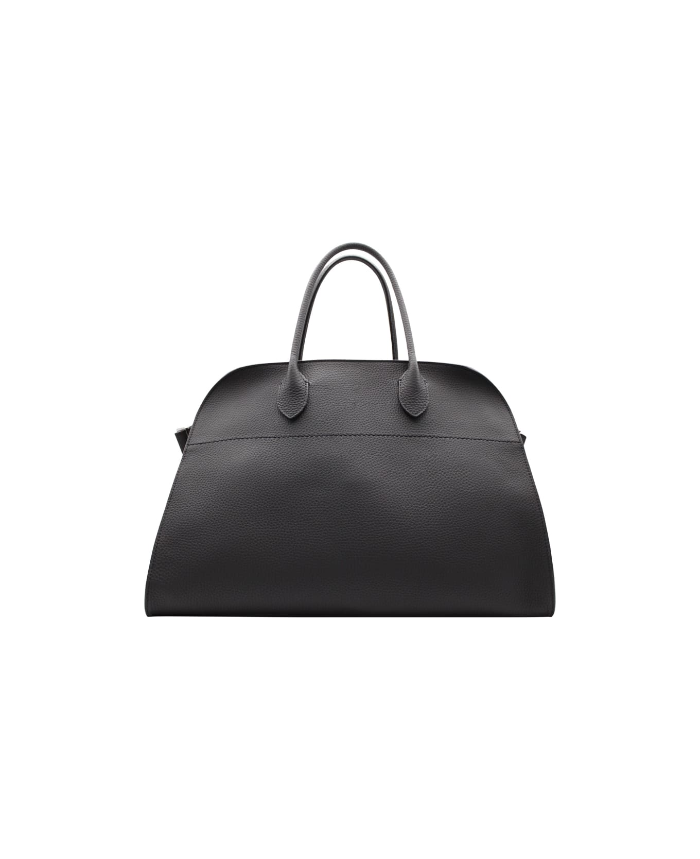 The Row soft Margaux 15 in grained matte calfskin leather with belted gusseted side panels and interior toggle closure, 2 interior card slots, 1 zip pocket.
