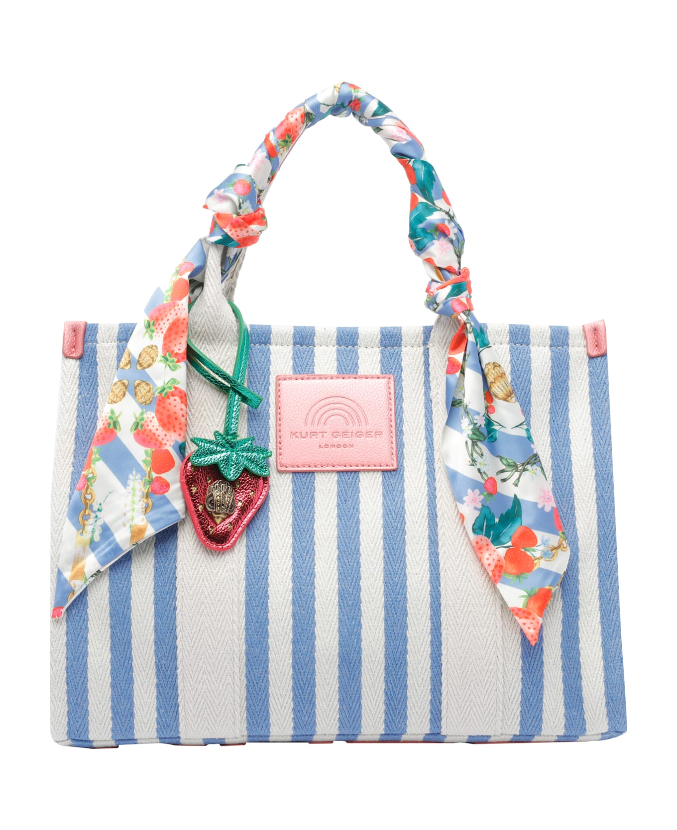 Kurt Geiger light blue Southbank tote bag, zip closure, inner zipped pocket, adaptable and removable strap, frontal patch logo, stripes, bandana detail Composition: 50% Cotton, 50% Polyester