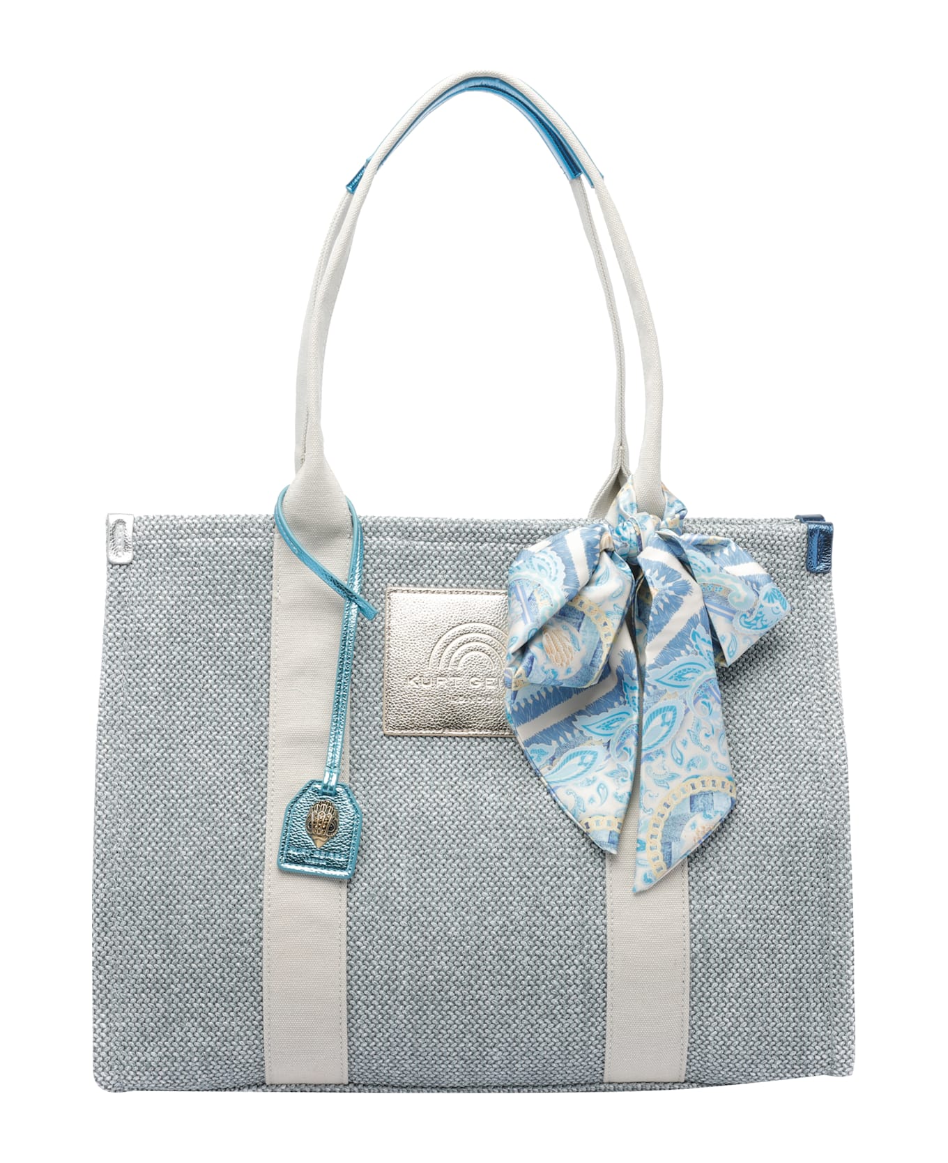 Kurt Geiger light blue Southbank tote bag, zip closure, inner zipped pocket, adaptable and removable strap, frontal patch logo, stripes, bandana detail Composition: 85% Polypropylene, 15% Polyester