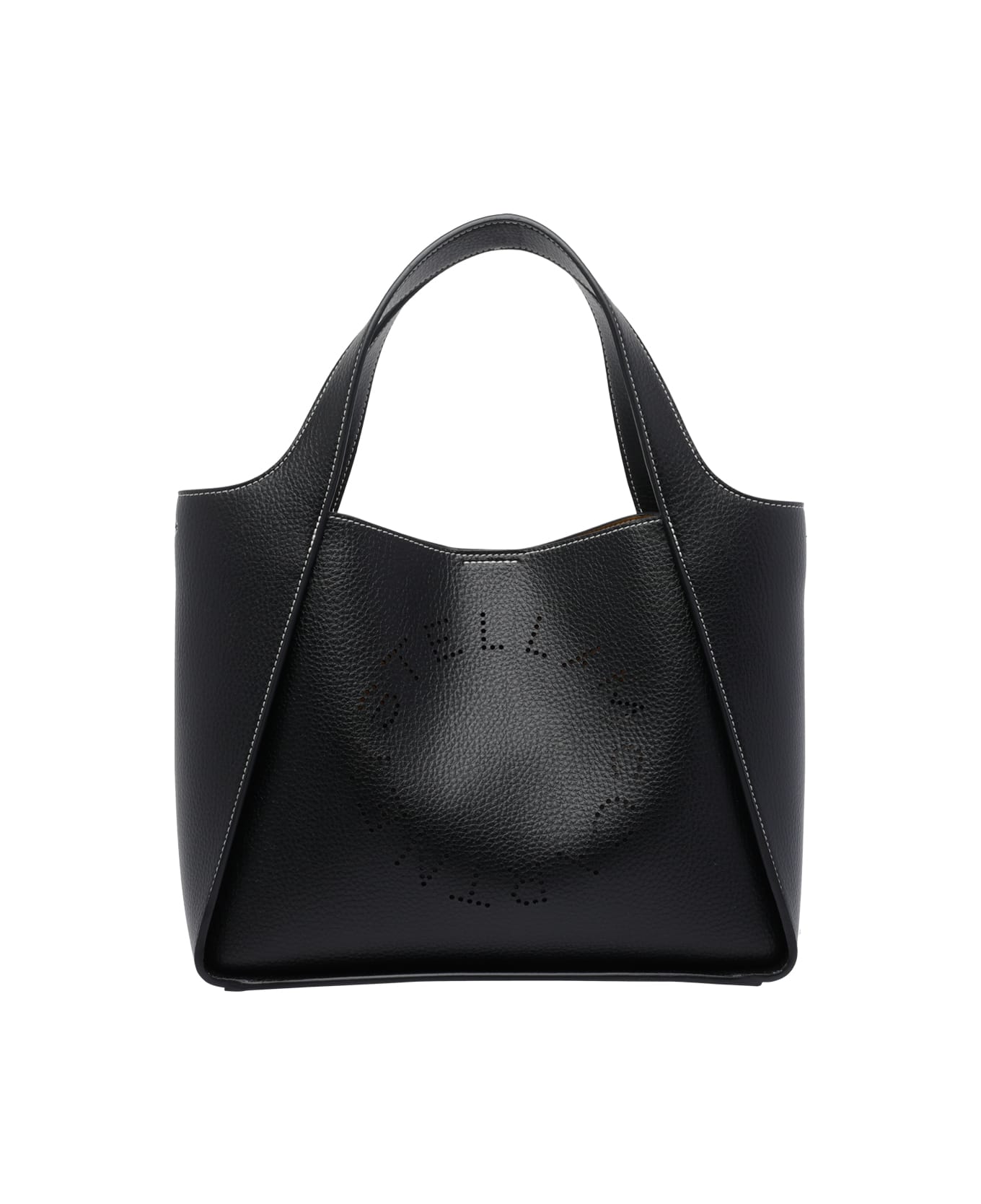 Stella Mccartney black Stella logo tote bag, magnetic closure, inner mini pochette, adaptable and removable strap, tone on tone frontal logo Composition: 100% Polyester