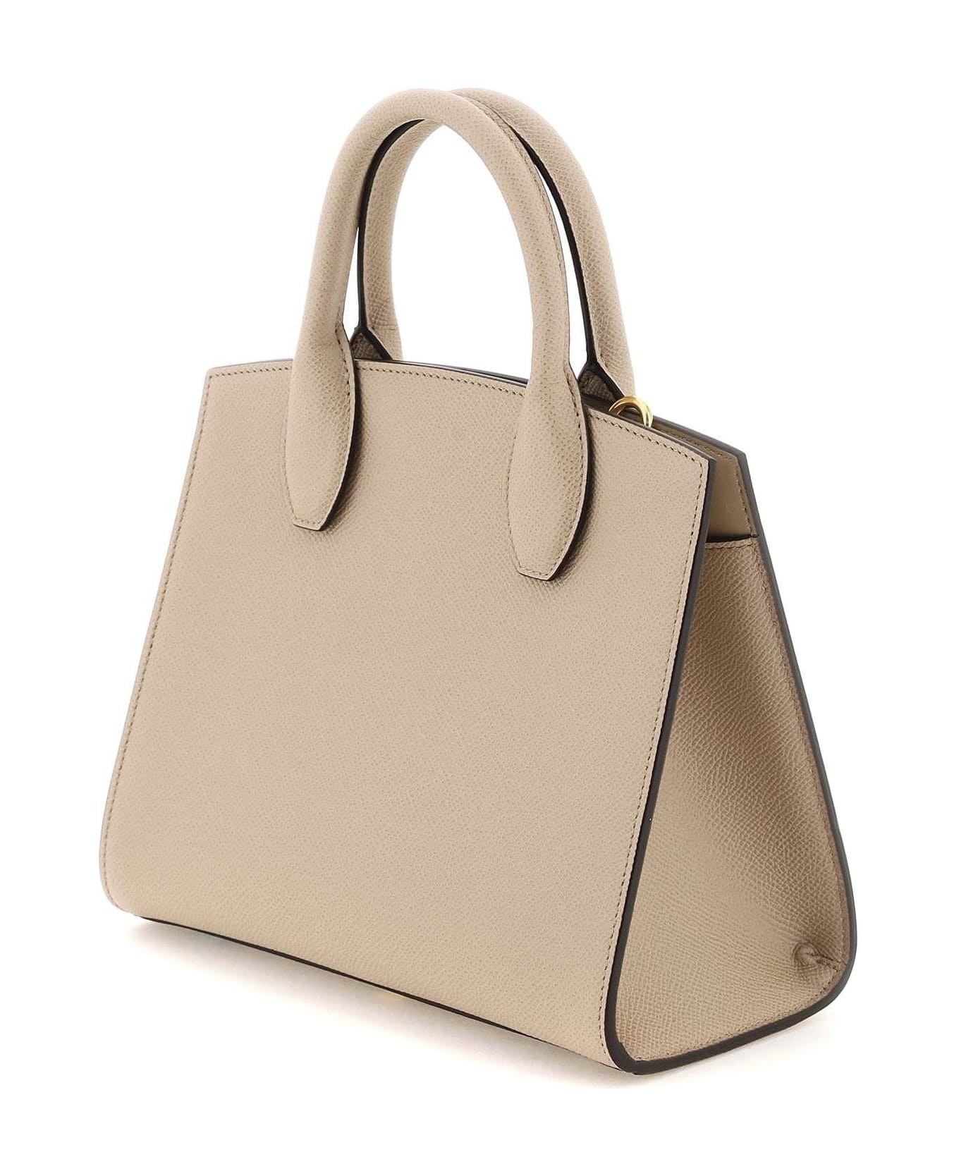 Salvatore Ferragamo Studio Box mini bag in hammered calf leather with metal buckle closure with the iconic Gancini motif. Two top leather handles and removable and adjustable shoulder strap. Contrasting leather lining with two open flat pockets. Gold-finished metal feet and hardware.. Composition: 100% Calf Leather