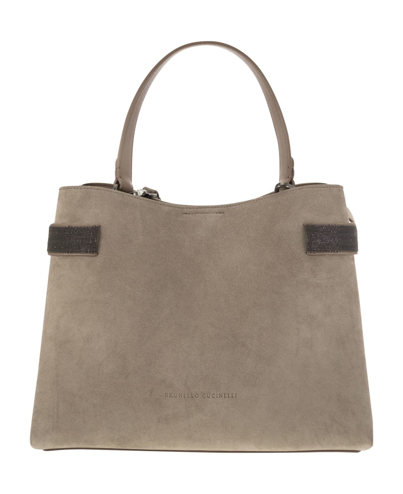 The soft touch and lightness of fine suede revisit the bag's classic square and elegant lines in a modern key. The essential, geometric shapes are illuminated by two embroidered jewel inserts that allow the width of the accessory to be adjusted and embrace the sides of the bag with a precious shiny effect. The adjustable and removable shoulder strap completes the accessory with a versatile detail. - Magnet closure - Adjustable and removable shoulder strap - Handle -Leather lining - Interior zipped compartment - Nickel-free jewel decoration DESIGNER ID: MBDLD2503 C5859 Composition: 100% Suede leather Application Eco finish brass