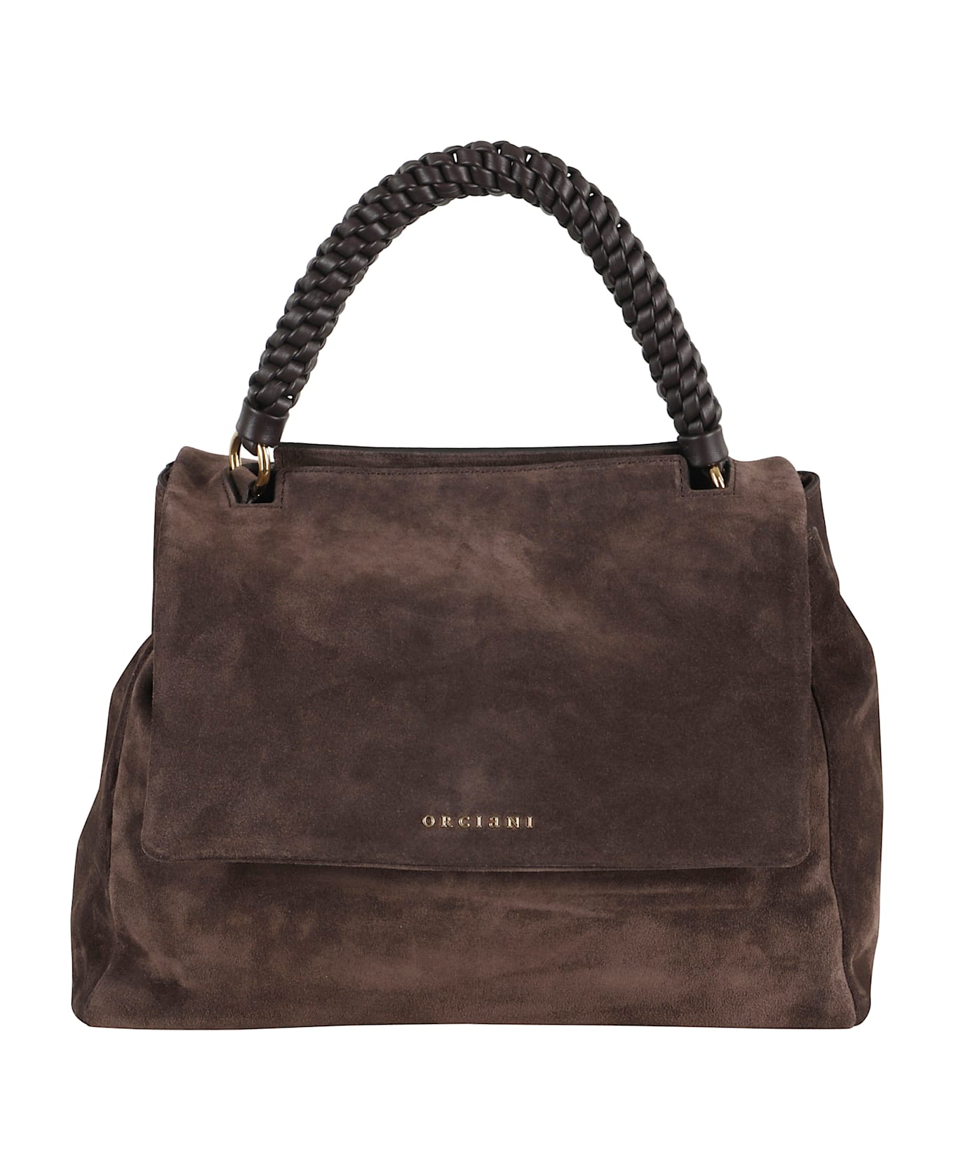 Sveva Soft Medium Bag -Orciani -Dark brown color -Single interior compartment -Suede handle -Adjustable and removable shoulder strap -Flap closure -Dimensions: Width 32cmx Height 24cm x Depth 15cm