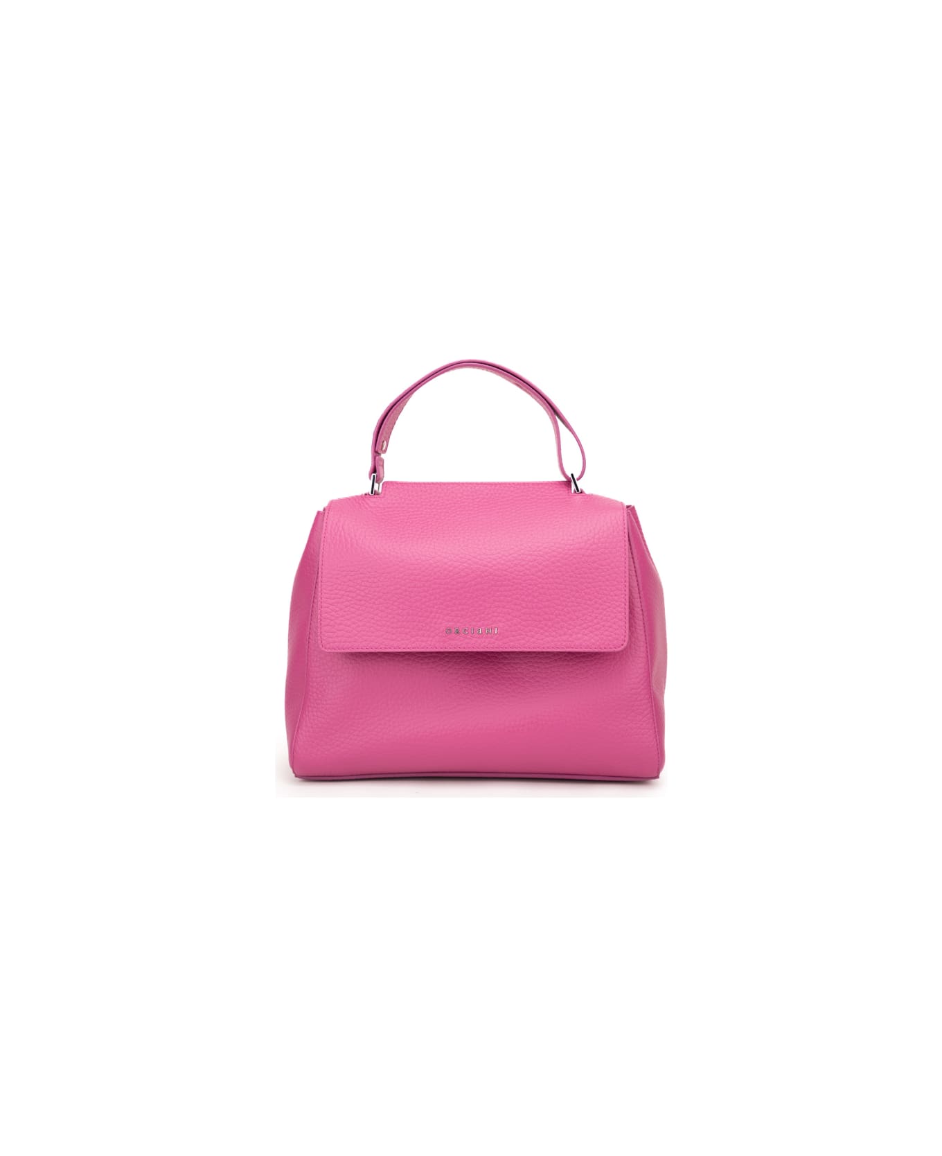 women's grained leather shoulder bag: medium size magnetic flap closure logo on the front handle removable leather shoulder strap hammered leather three internal pockets composition: 100% leather