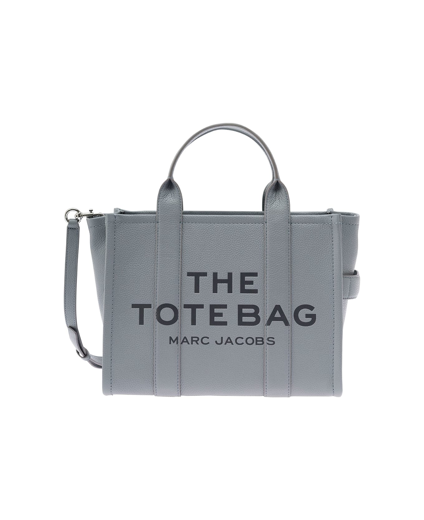 'the Medium Tote Bag' Grey Shoulder Bag With Logo In Grainy Leather Woman