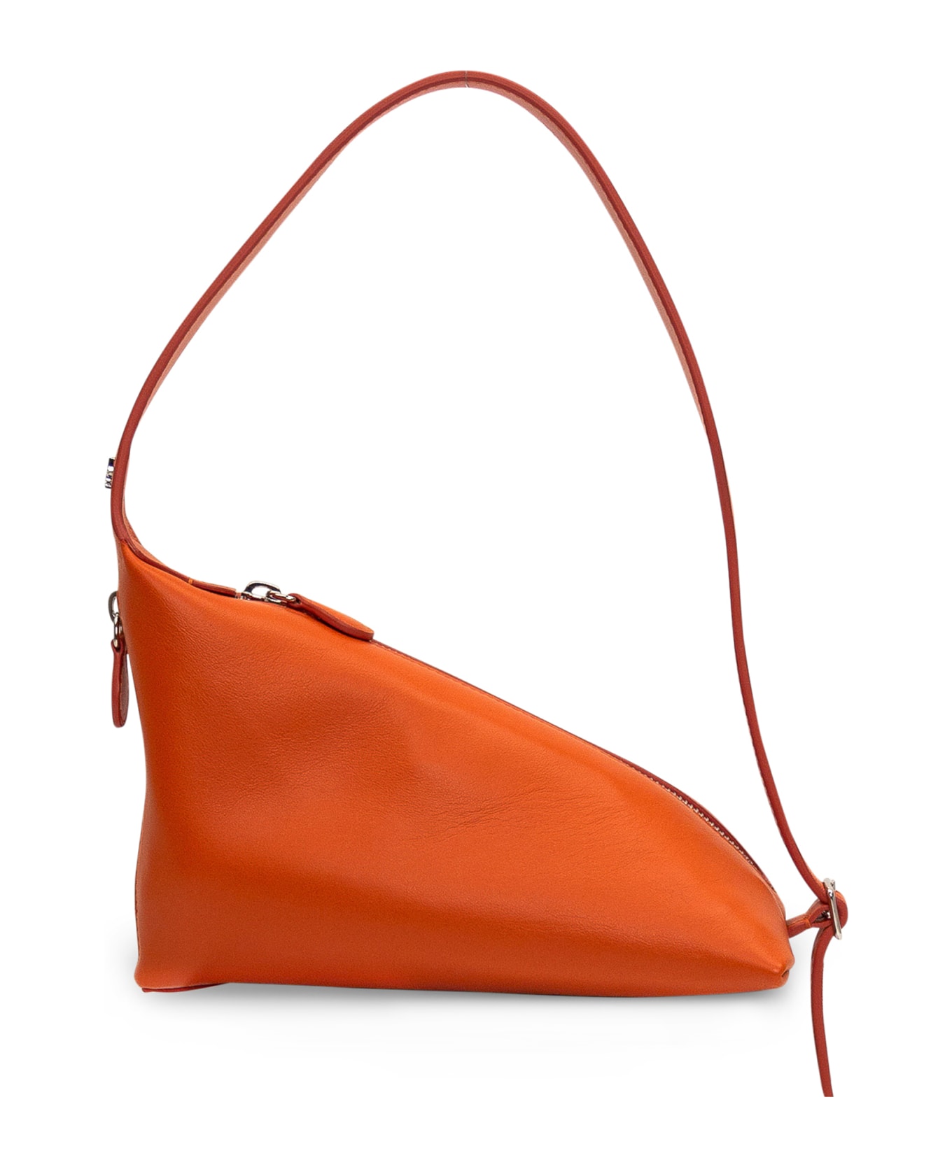 Orange bag. Adjustable shoulder strap. Zip closure. Side pocket with zip. Logo on the shoulder strap.