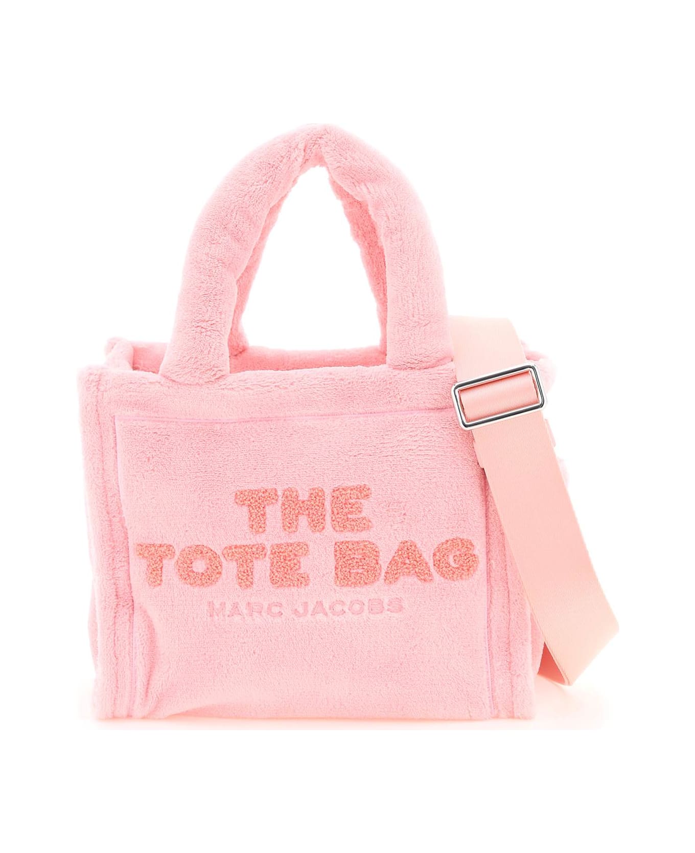 Terry Tote bag by Marc Jacobs in towel cotton, featuring adjustable and removable webbing strap, contrast lettering logo on front, back logo patch, zip closure, side handle. Unlined interior. Steel-finish metalware.
