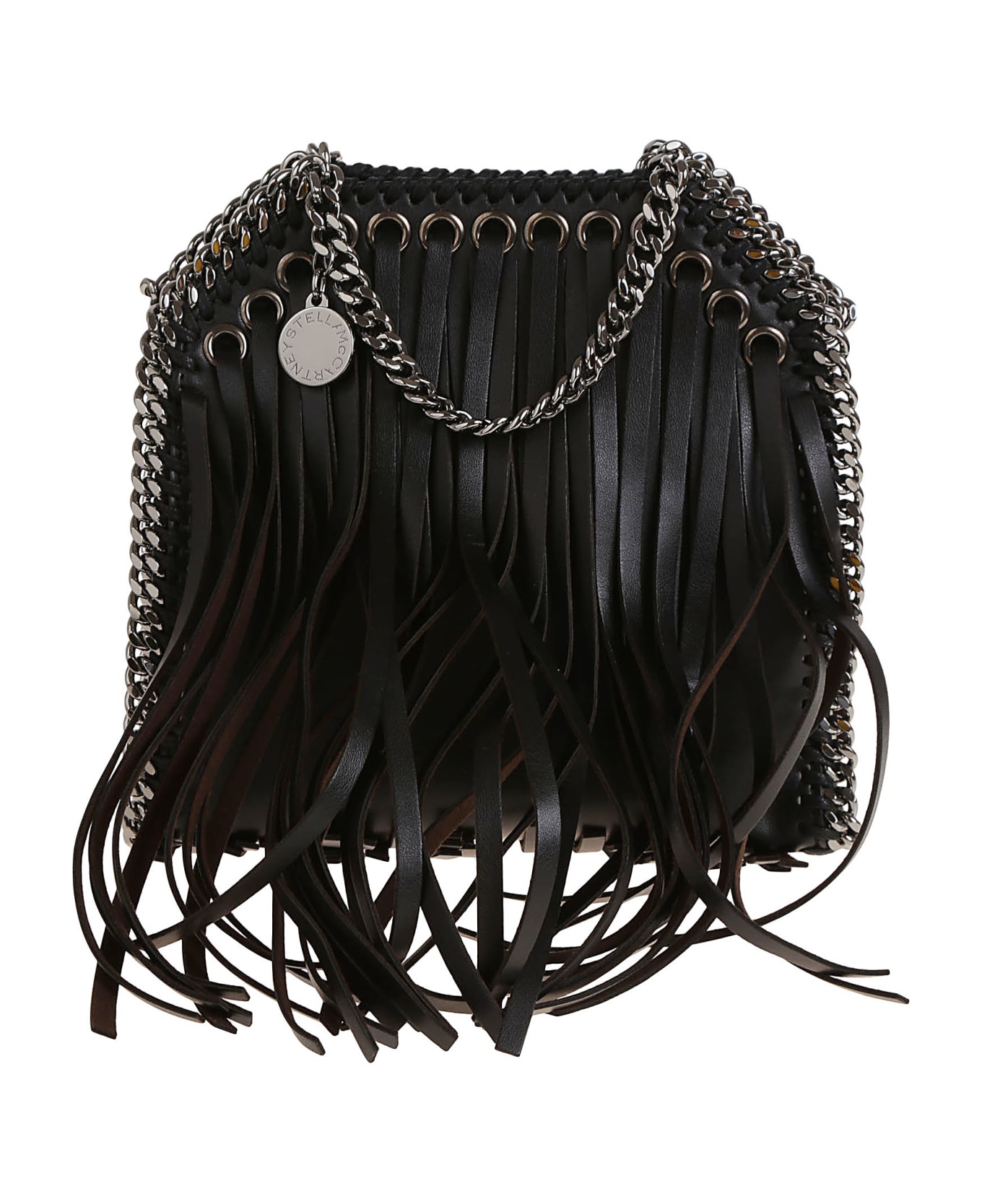 TINY Tote Falabella, a must of the Stella McCartney brand present in all seasons with the color variant. Snap button closure and inside pocket. Characterized by a silver chain that follows the perimeter of the bag forming the handles on the top, Stella McCartney logo medal, a third chain that allows the bag to be worn crossbody or on the shoulder. Ideal to be worn both sporty during the day with sneakers and in the evening with a more elegant and feminine outfit. Fringes detail.