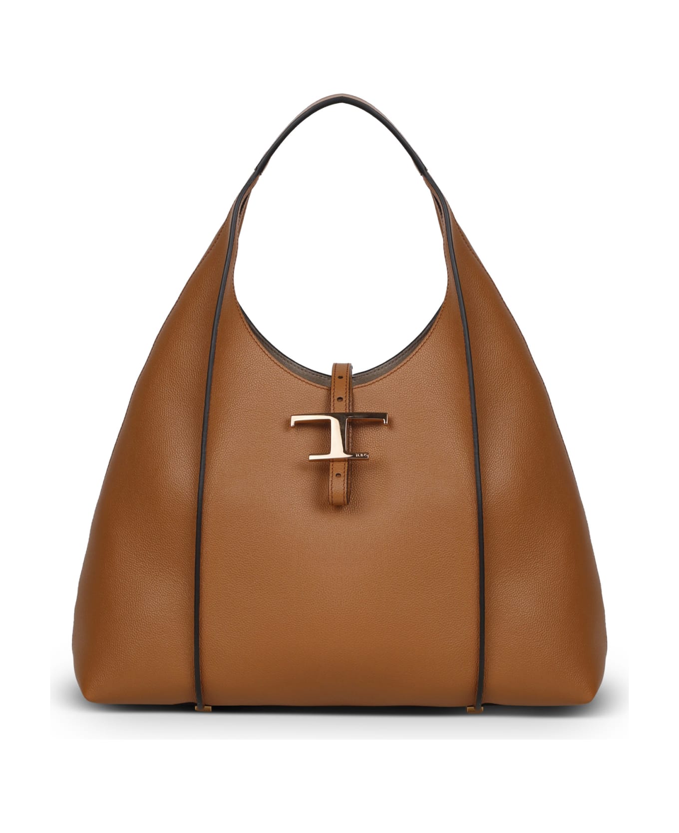 Tote bag, T Timeless gold-tone logo plaque, knurled texture, top flap, single handle, single compartment, detachable pouch, by Tod'S Composition: 100% Leather