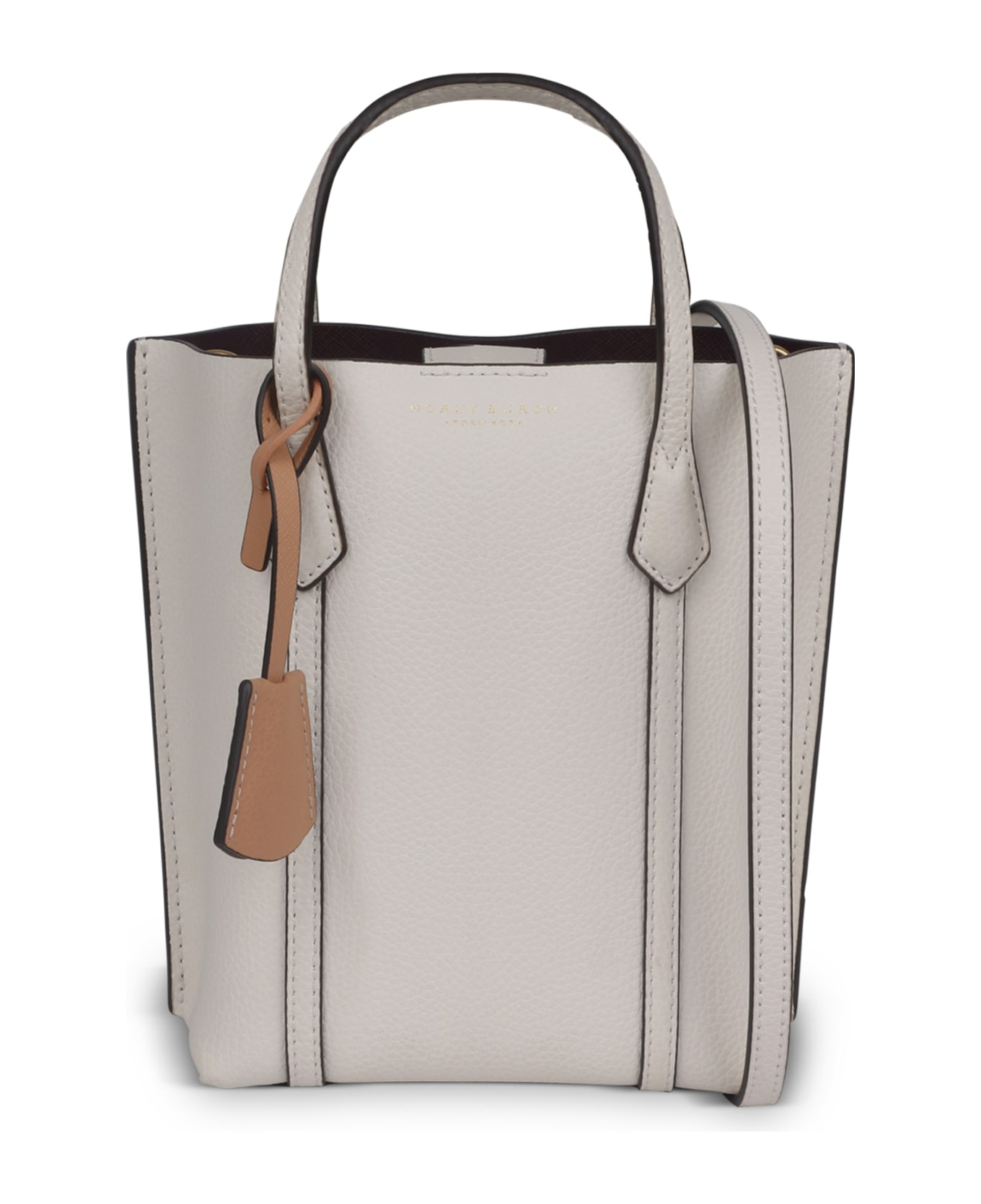 Front logo lettering tote bag, two handles, adjustable and removable shoulder strap, leather tag, magnet closure, internal zip pocket, by Tory Burch