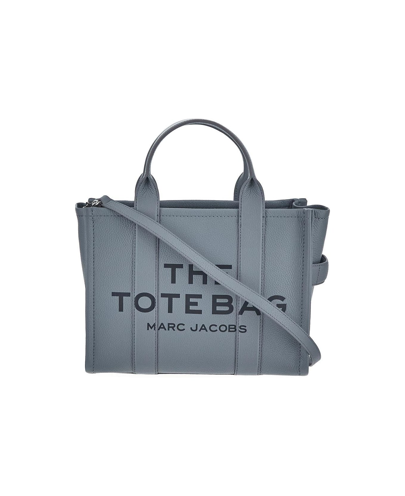 Marc Jacobs tote bag in wolf grey grain leather with one compartment, one internal zipped pocket, two internal open pockets, top-zip closure, twin top handle extended to the bottom, adjustable/removable leather strap, silver-toned metal hardware, debossed logo patch to the back and debossed tonal logo at front.