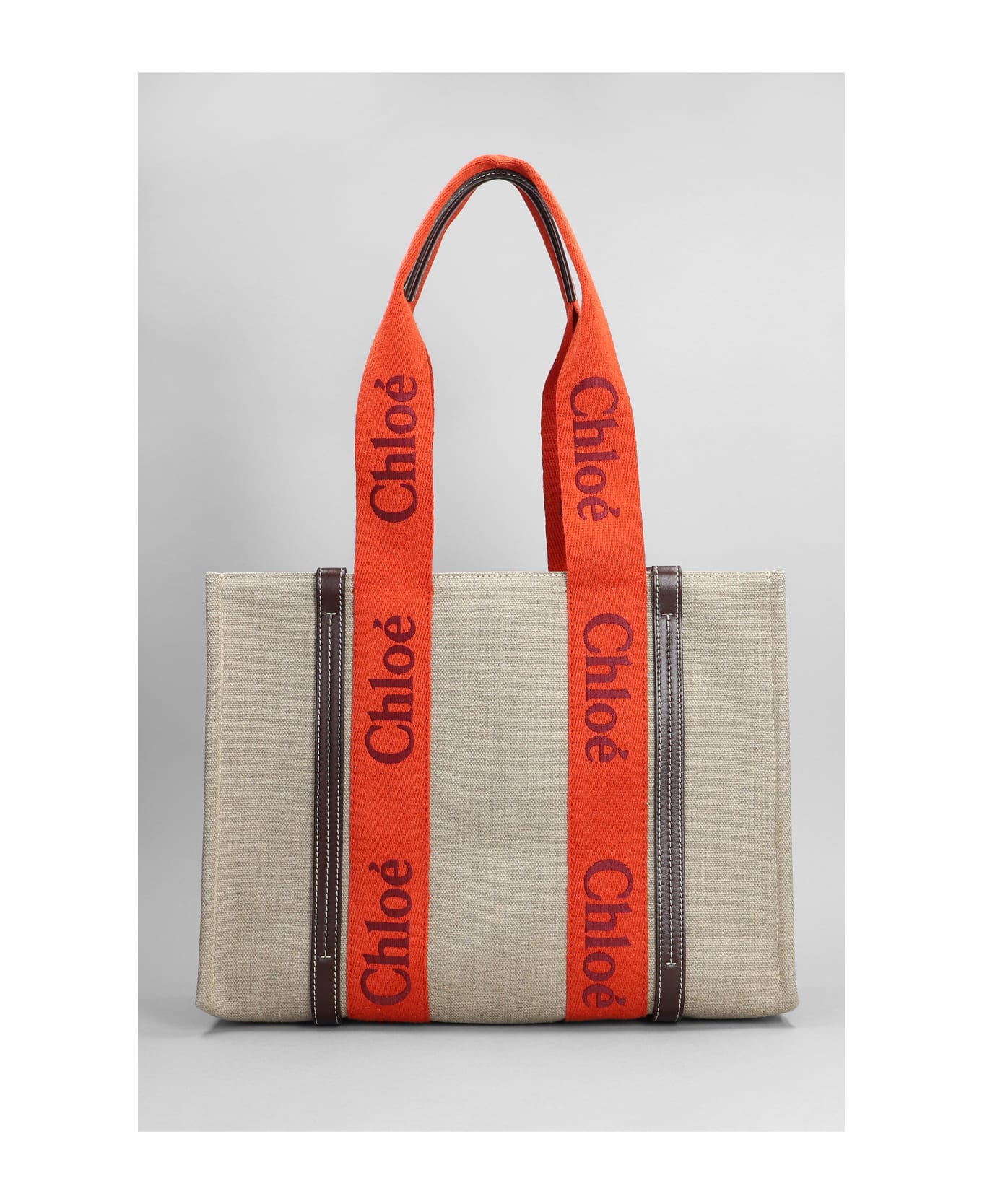 Tote in grey fabric, double handle, leather detail, logo bands, 100% canvas, Made in Italy, Height 285 mm, Width 360 mm