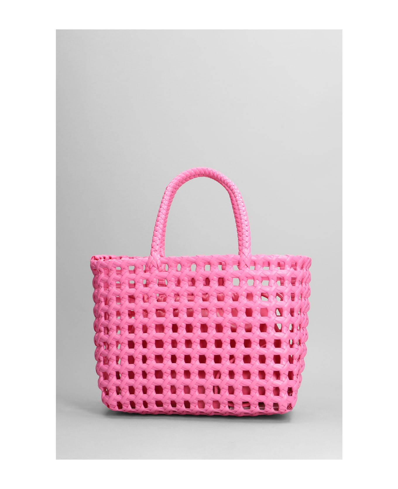 Tote in rose-pink polyester, double handle, pouch detail, net effect, Made in China, Height 210 mm, Width 305 mm