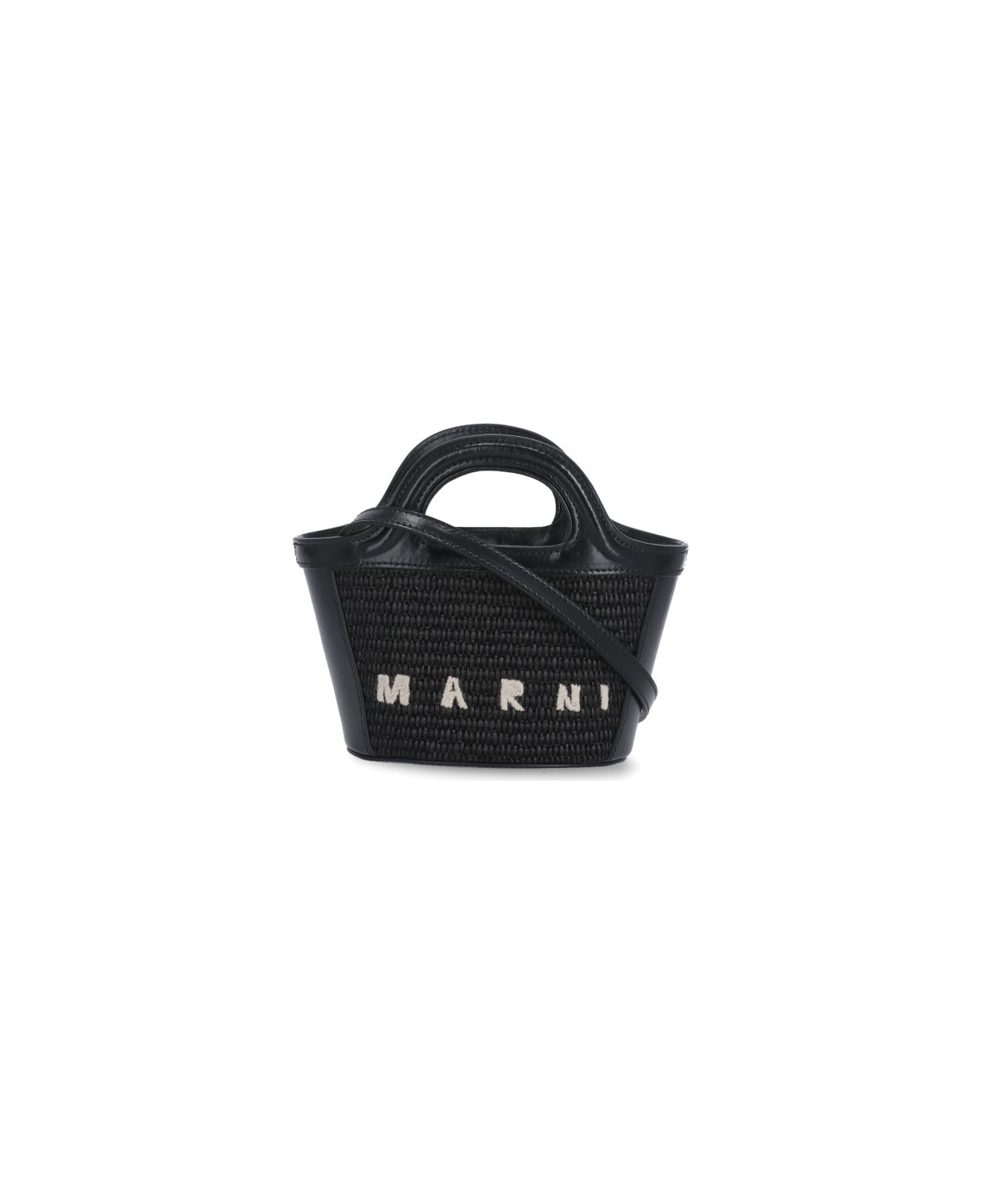 - Black Marni wool blend shoulder bag for woman - Two handles - Removable shoulder strap - One main compartment with belt - Front embriodered contrasting color logo - front and rear contrastign fabric details