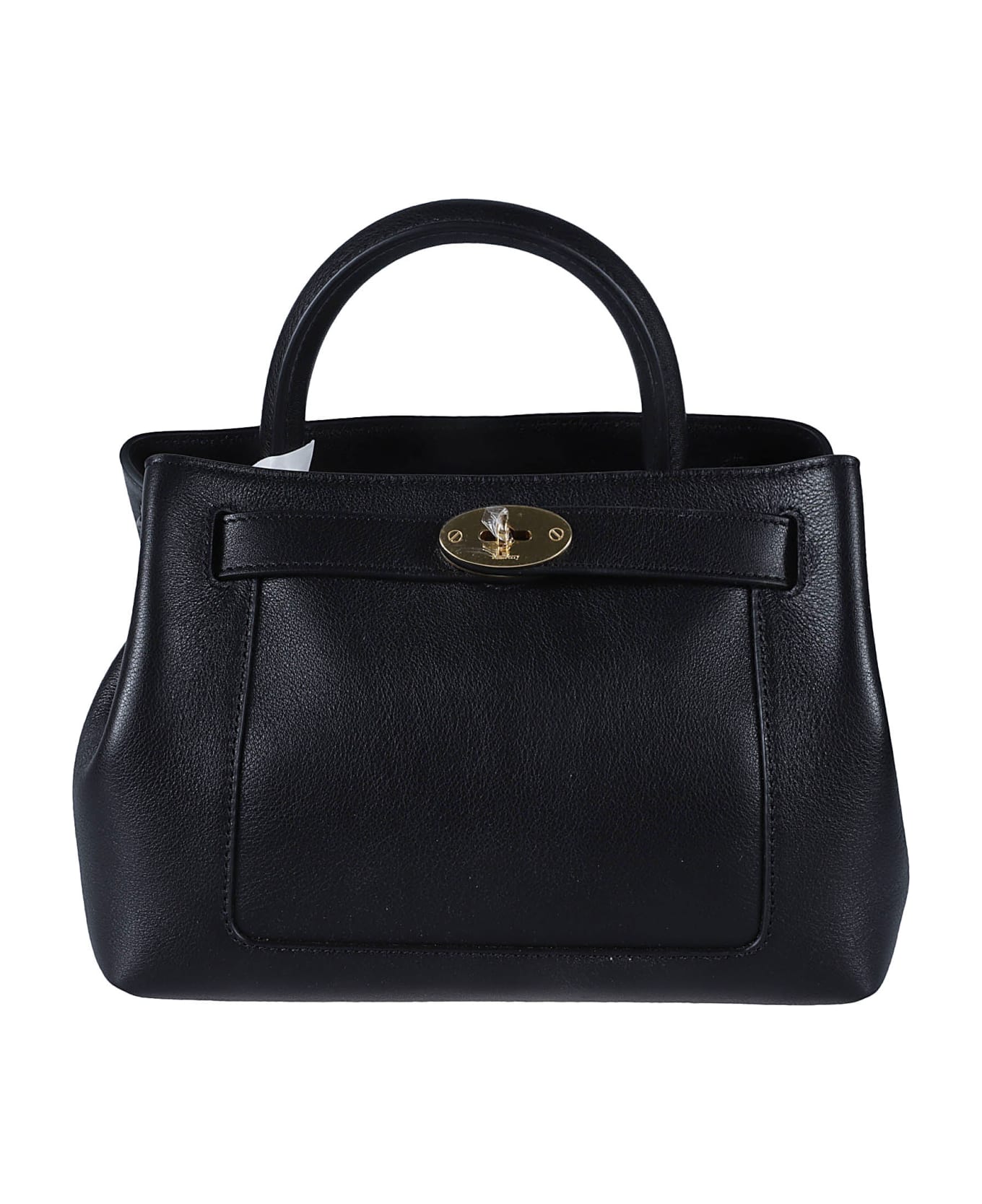 Islington leather tote bag from MULBERRY featuring calf leather, silver-tone hardware, engraved logo, single flat top handle, twist-lock closure, internal zip-fastening pocket, main compartment, adjustable shoulder strap and black.