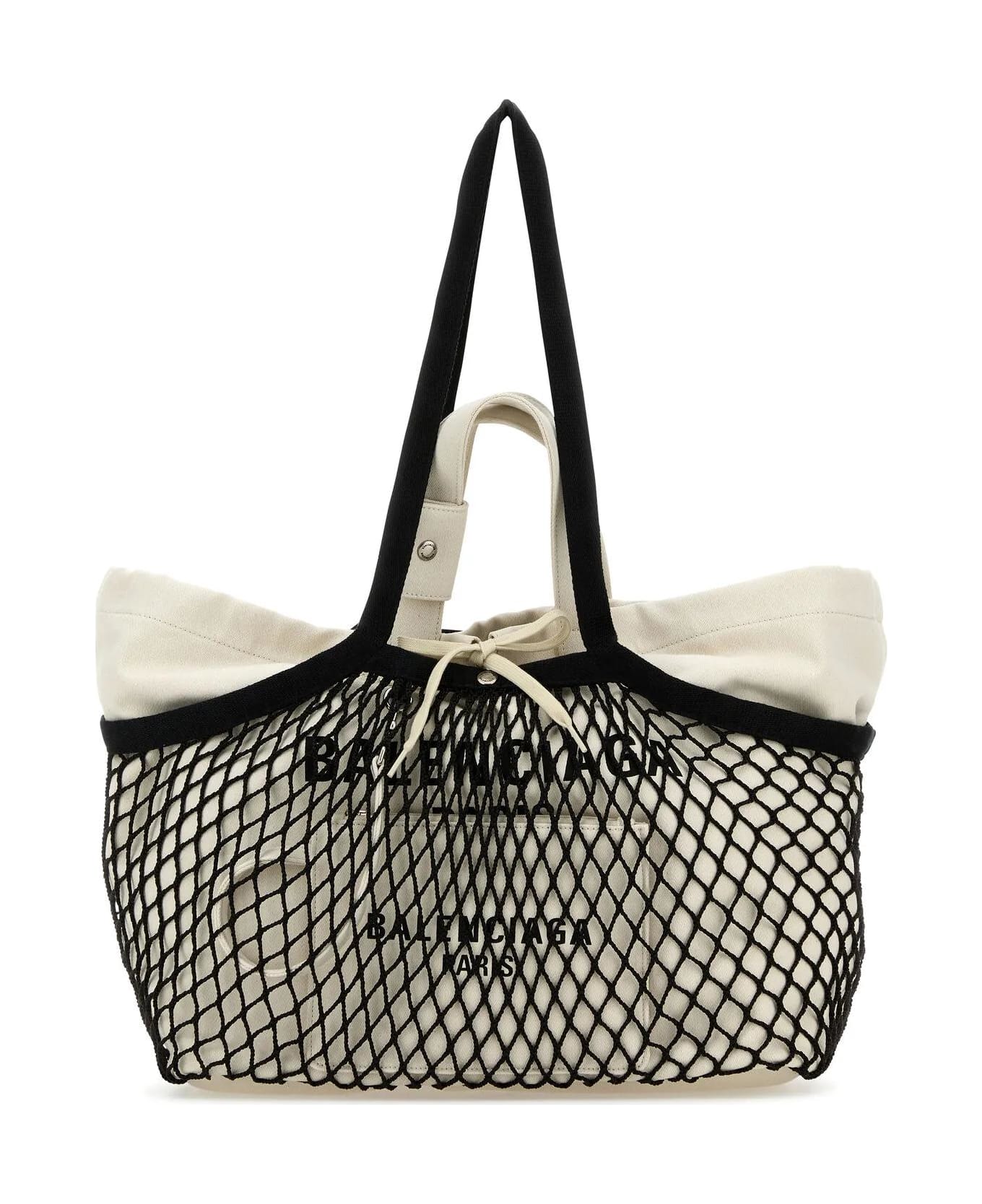Shopping bag realized in pure cotton canvas and mesh characterized by Balenciaga Paris print at the front. - Two fabric flat handles - Two fabric flat handles - Drawstring closure - Detachable fabric pouch - Lined interiore with a zip pocket Composition: Exterior: 100% Cotton 100% Fabric Lining: 100% Nylon Finishing: Silver metal