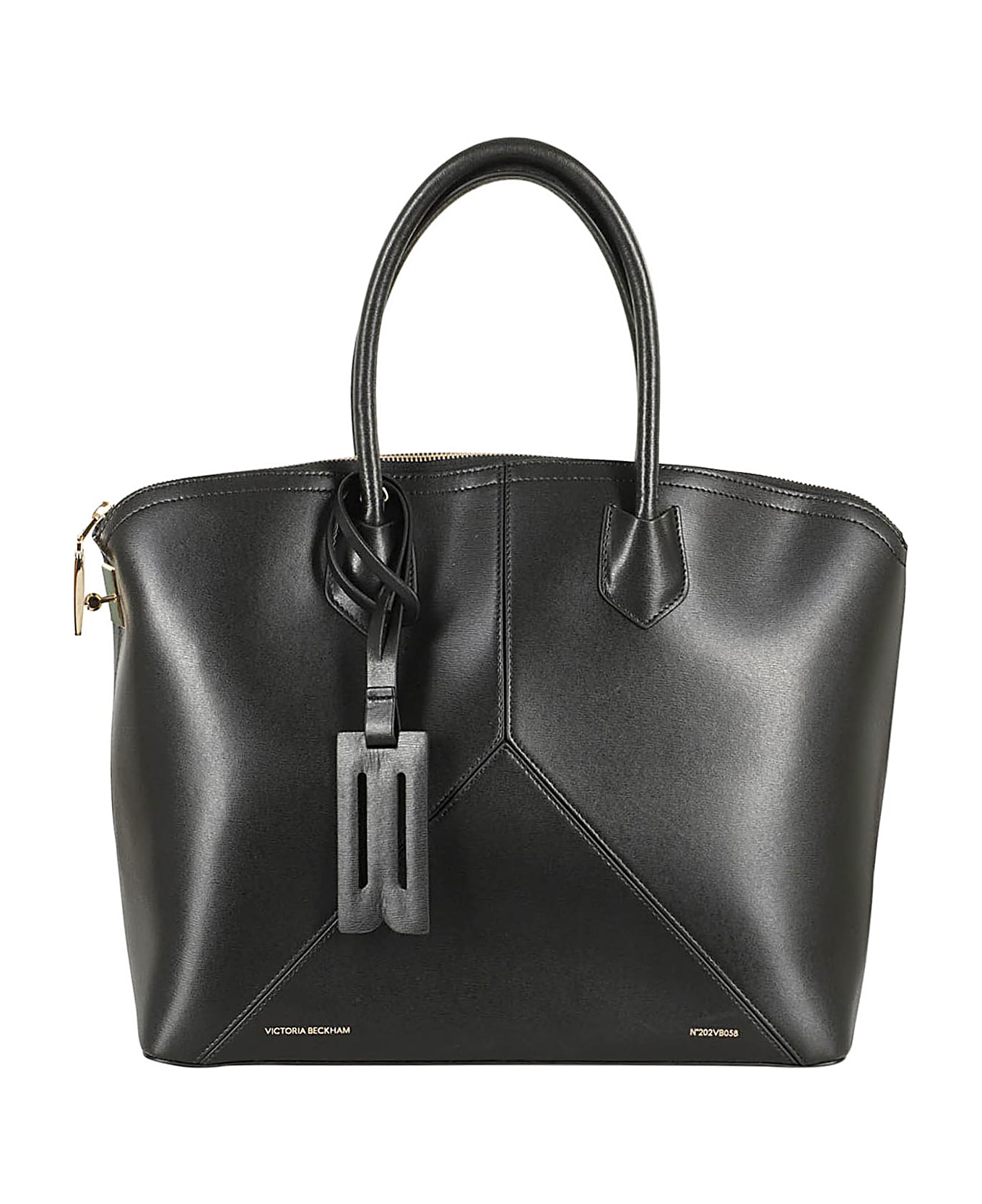 V Tote Bag - Victoria Beckham - black color - double top handles - zipper closure with side hook - engraved logo on bottom - gold color metal details Dimensions: Width 42cm x Height 29cm x Depth 16. 5cm