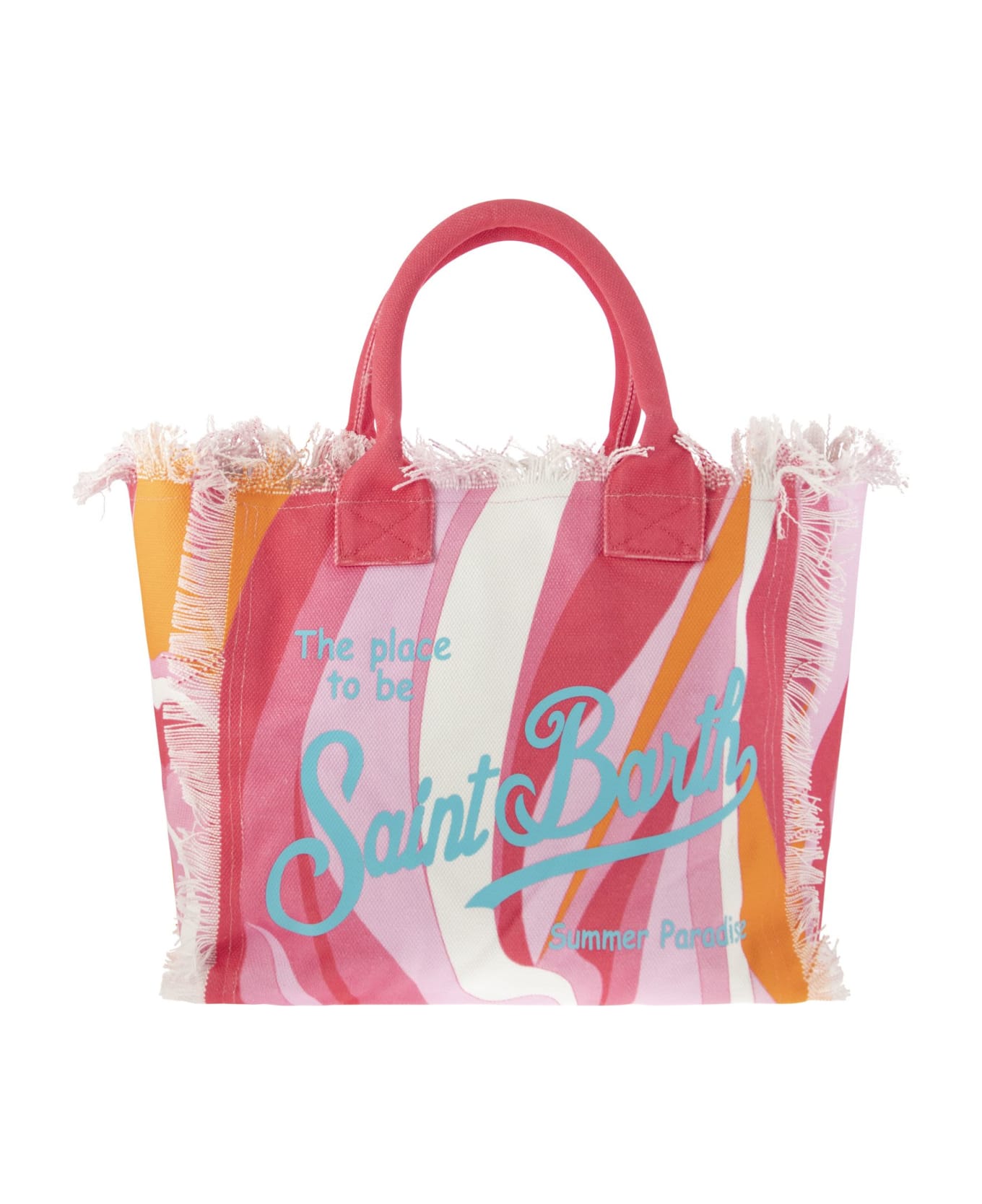 Vanity shoulder bag in cotton, with fringes along the edges and embellished with a contrasting colour logo on the front. Comfortable canvas handles finish off this bag to carry with you at all times. - One zipped inside pocket - Zip closure - Front logo DESIGNER ID: VANI001 00874D Composition: 100% Cotton