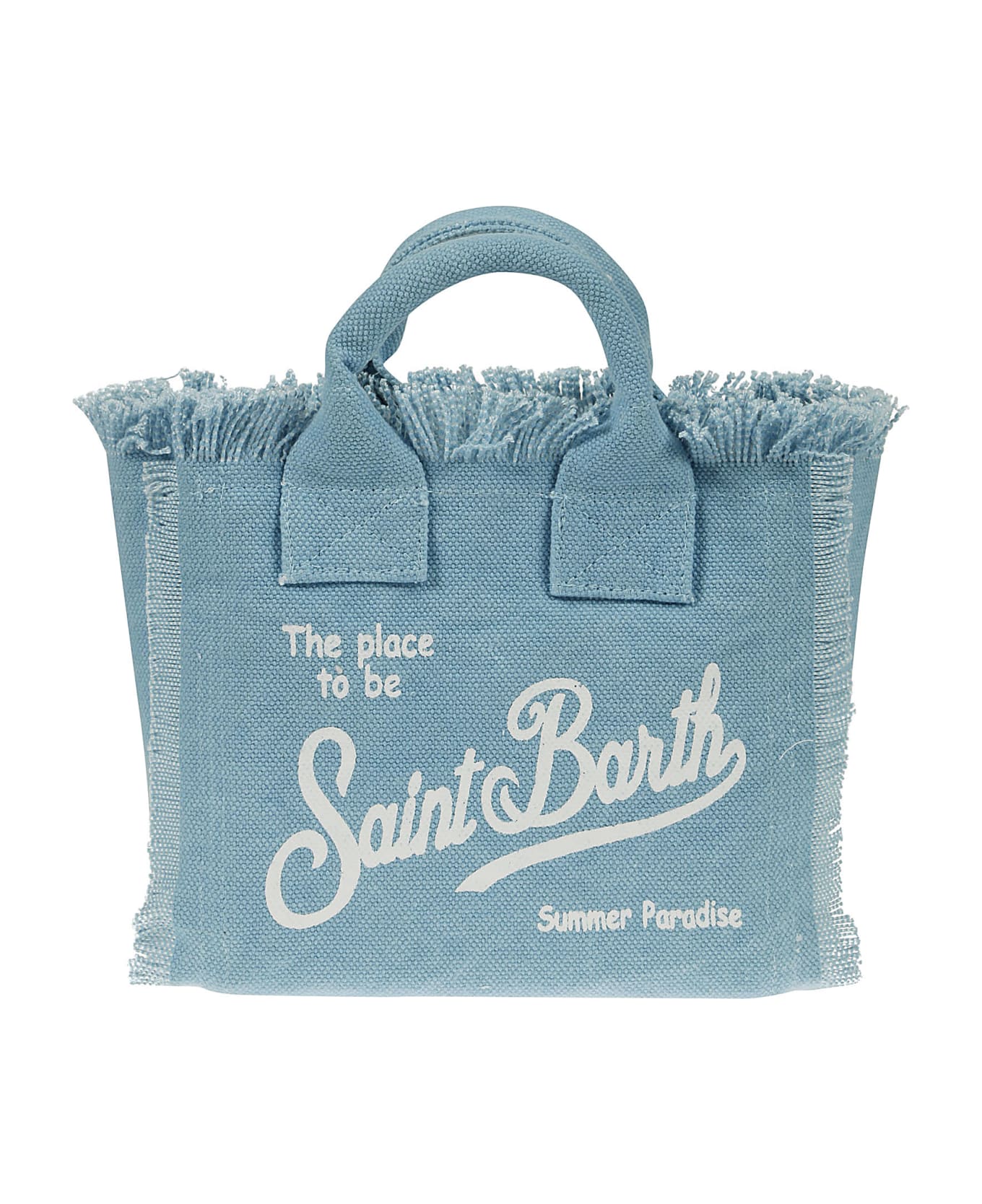 MC2 Saint Barth Light blue cotton bag, fringe insert, logo print detail, shoulder strap, size 22 x 17 x 10 cm Composition: 100% Co